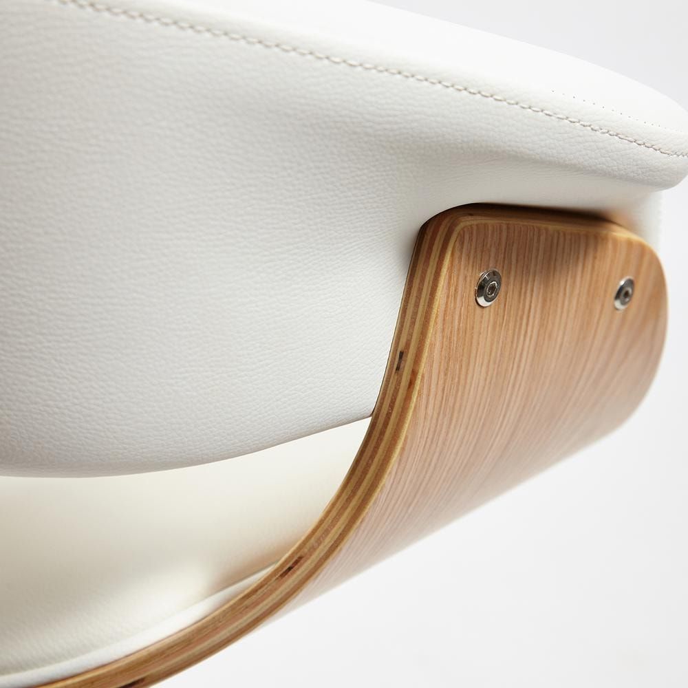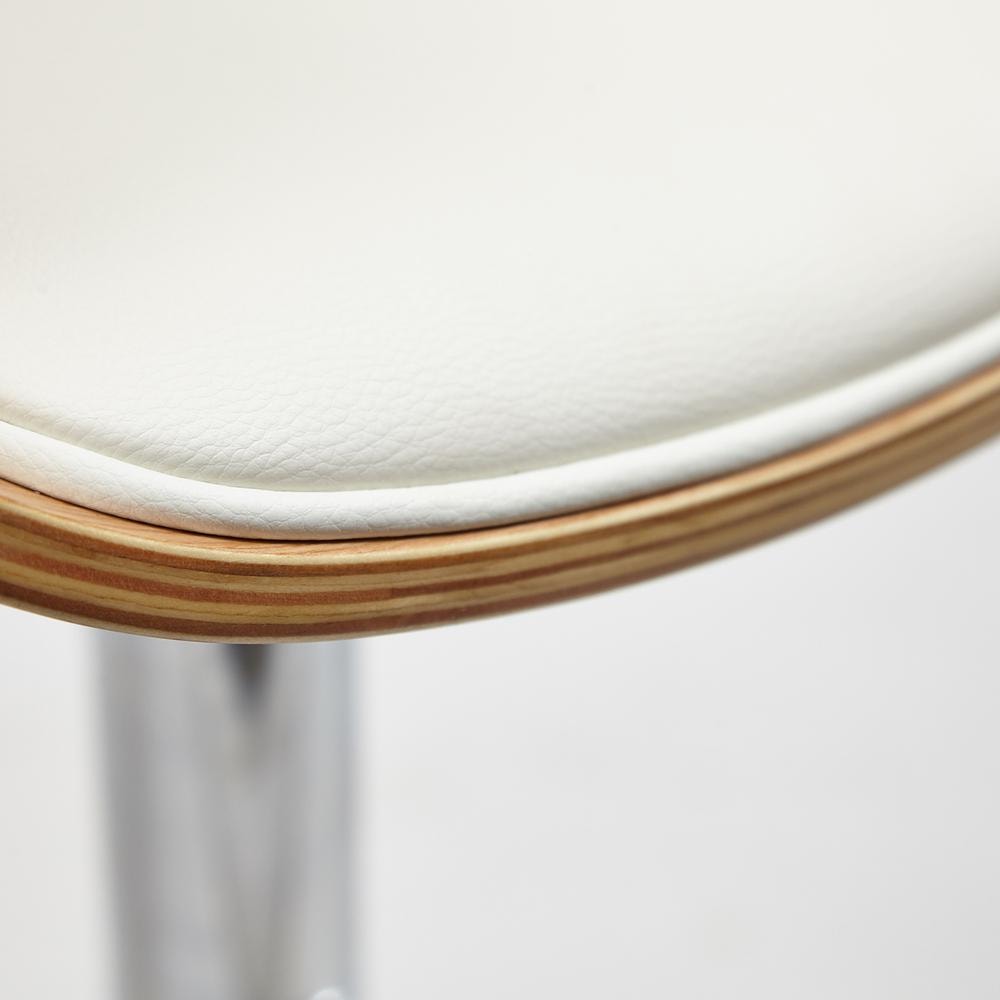 Стильный барный стул VIMTA создан по мотивам работ известных американских дизайнеров середины двадцатого века супругов Имз, которые первыми применили в проектировании мебели технологию сгиба многослойной фанеры. Светлая обивка из экокожи неприхотлива в уходе и долговечна. Круглое основание из стали с хромированным покрытием придает стулу большую устойчивость. Поролоновый наполнитель сиденья и спинки, удобная подставка для ног и возможность регулировки высоты сделают стул VIMTA любимым предметом интерьера в вашем доме. Данная мебель относится к коллекции Holland. Страна-производитель: Китай