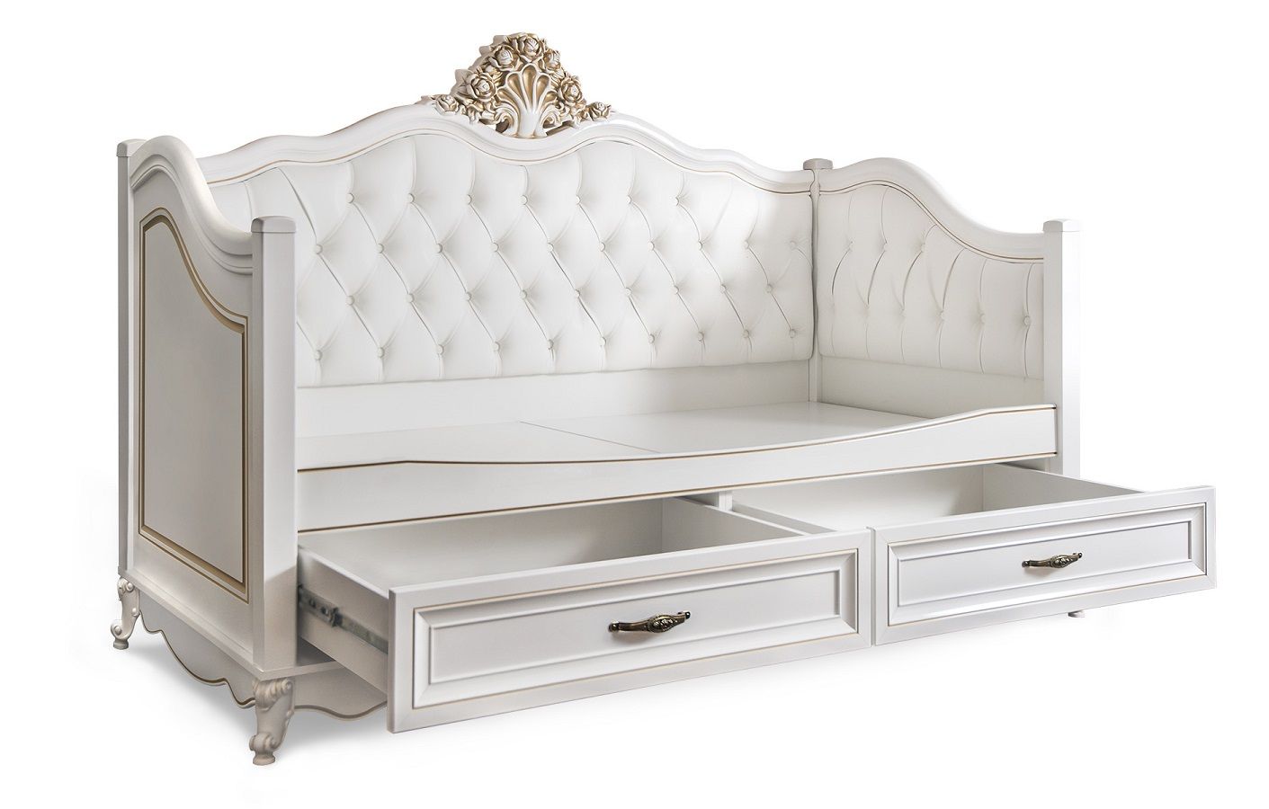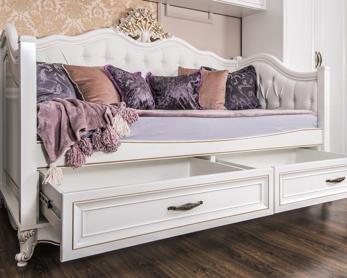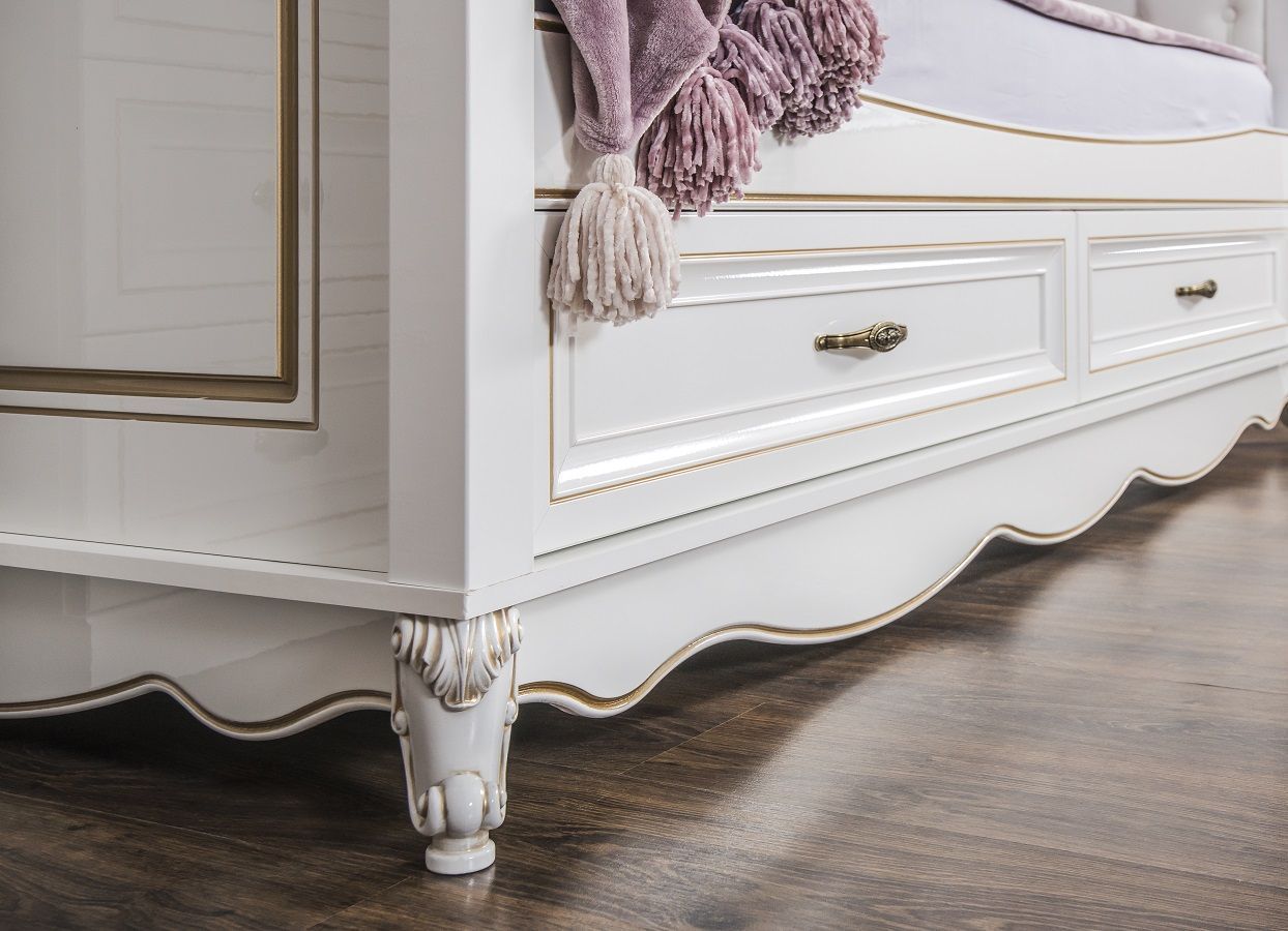 Утонченные элементы, роскошная обивка, витиеватые накладки доставят эстетическое наслаждение своим владельцам. Белый цвет мебели позволяет визуально увеличить пространство спальни, подчеркнуть важные детали, добавив в пространство легкости и света. Компания-производитель «ЭРА» доставит товар в любой уголок страны, чтобы создать там царство роскоши и элегантности.
