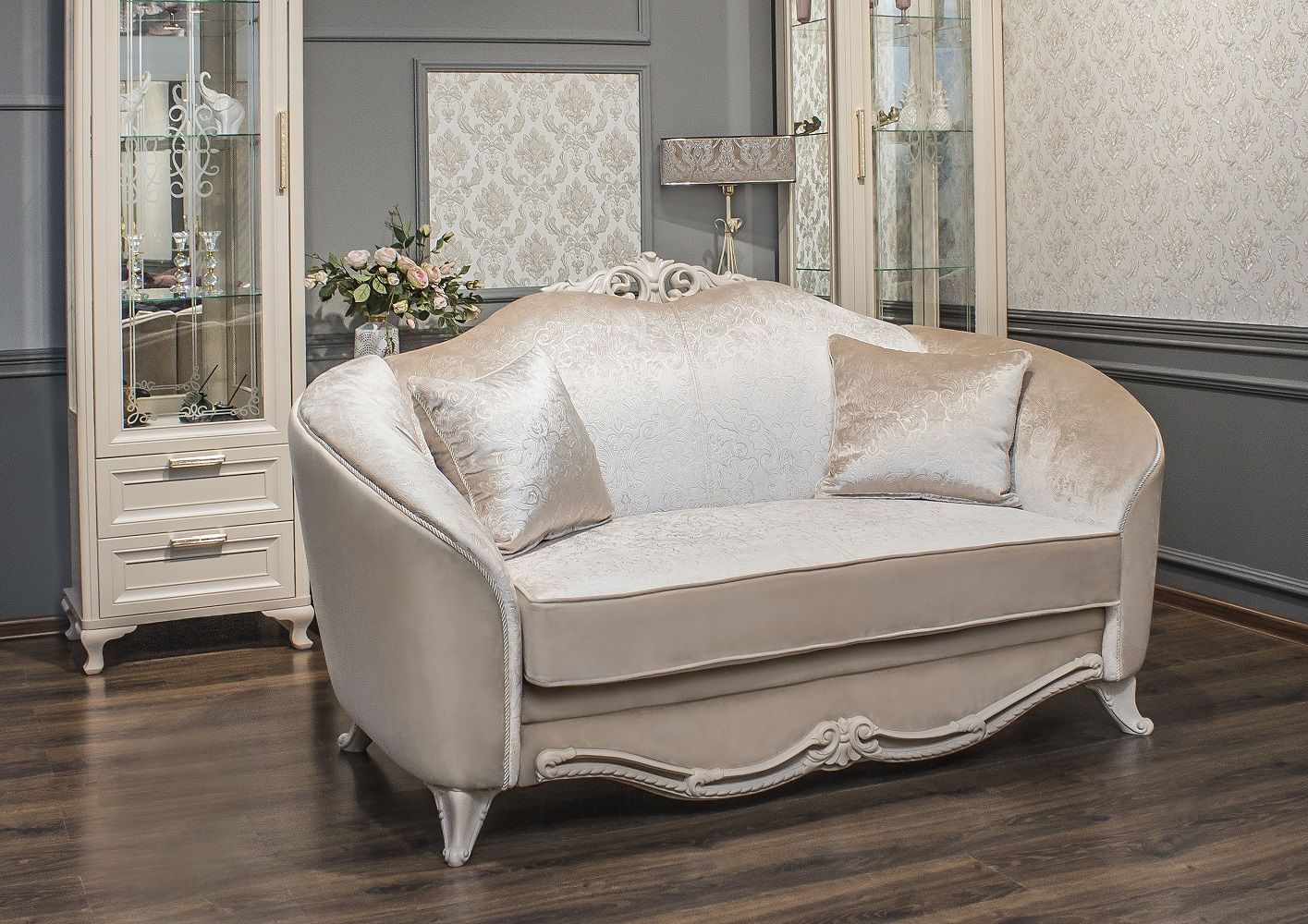 МОККО — это столовая группа с круглым столом и мягкими стульями на античных ножках.