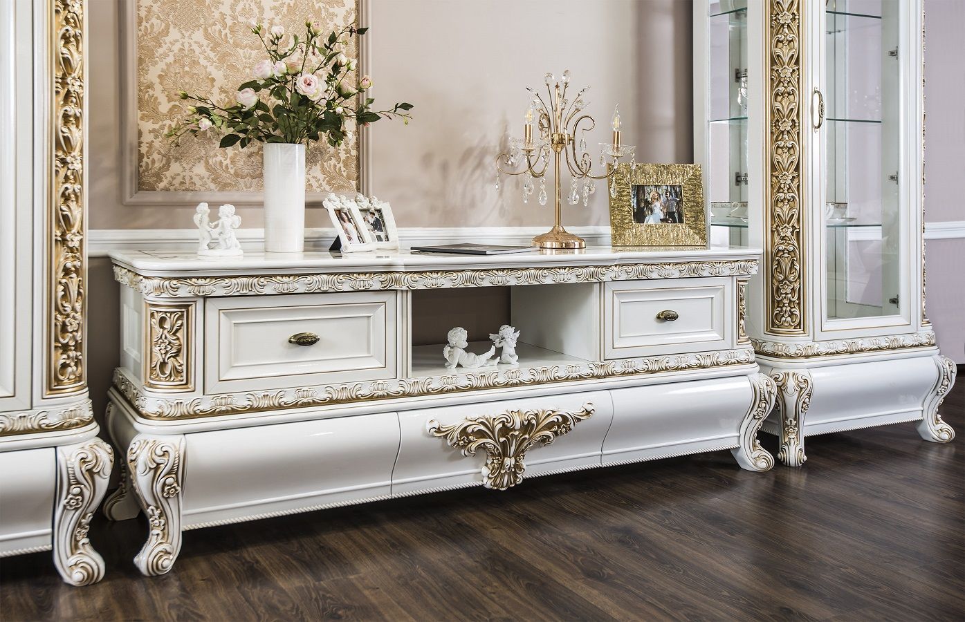 • Декоративные элементы, фасады, накладки покрыты золотой патиной и матовым лаком