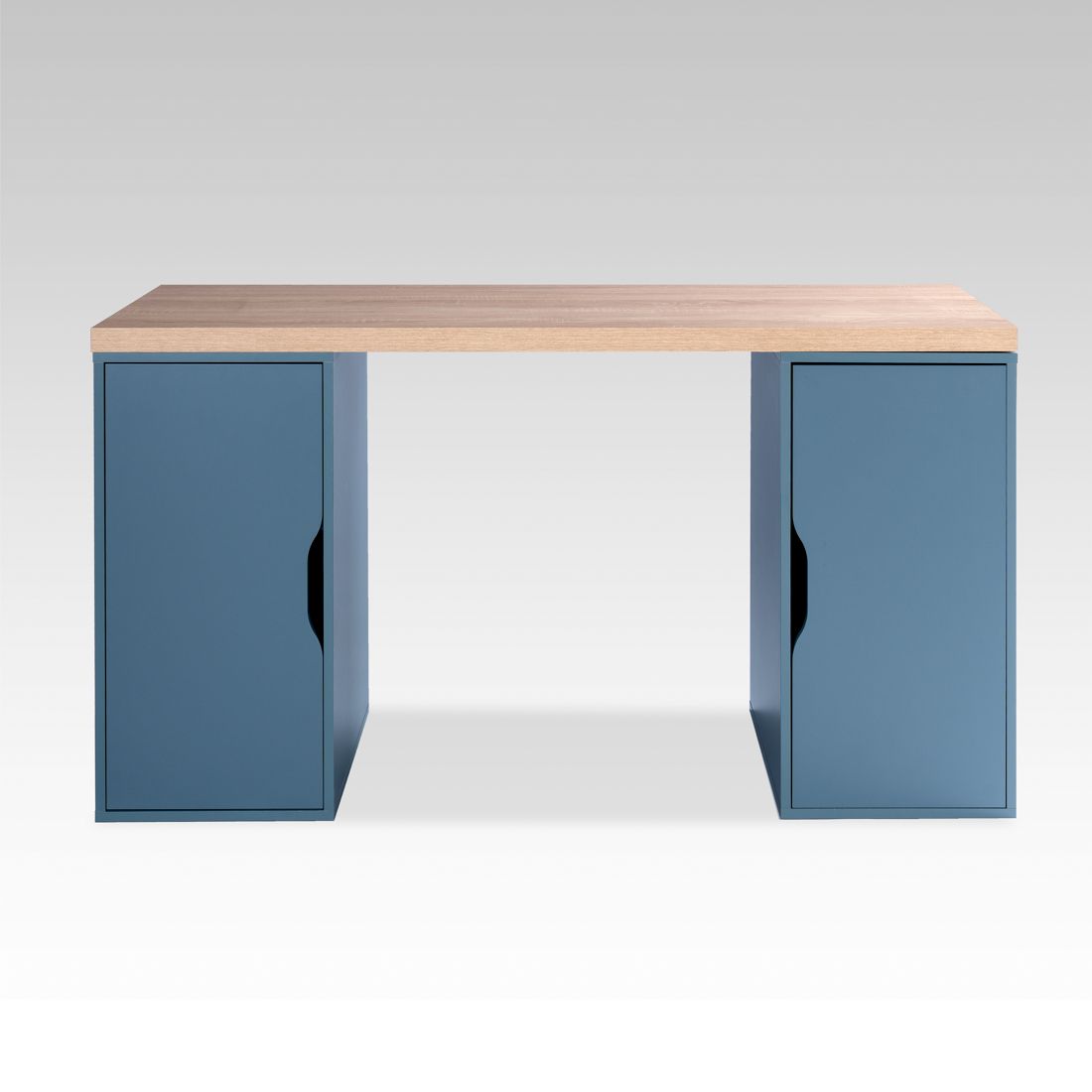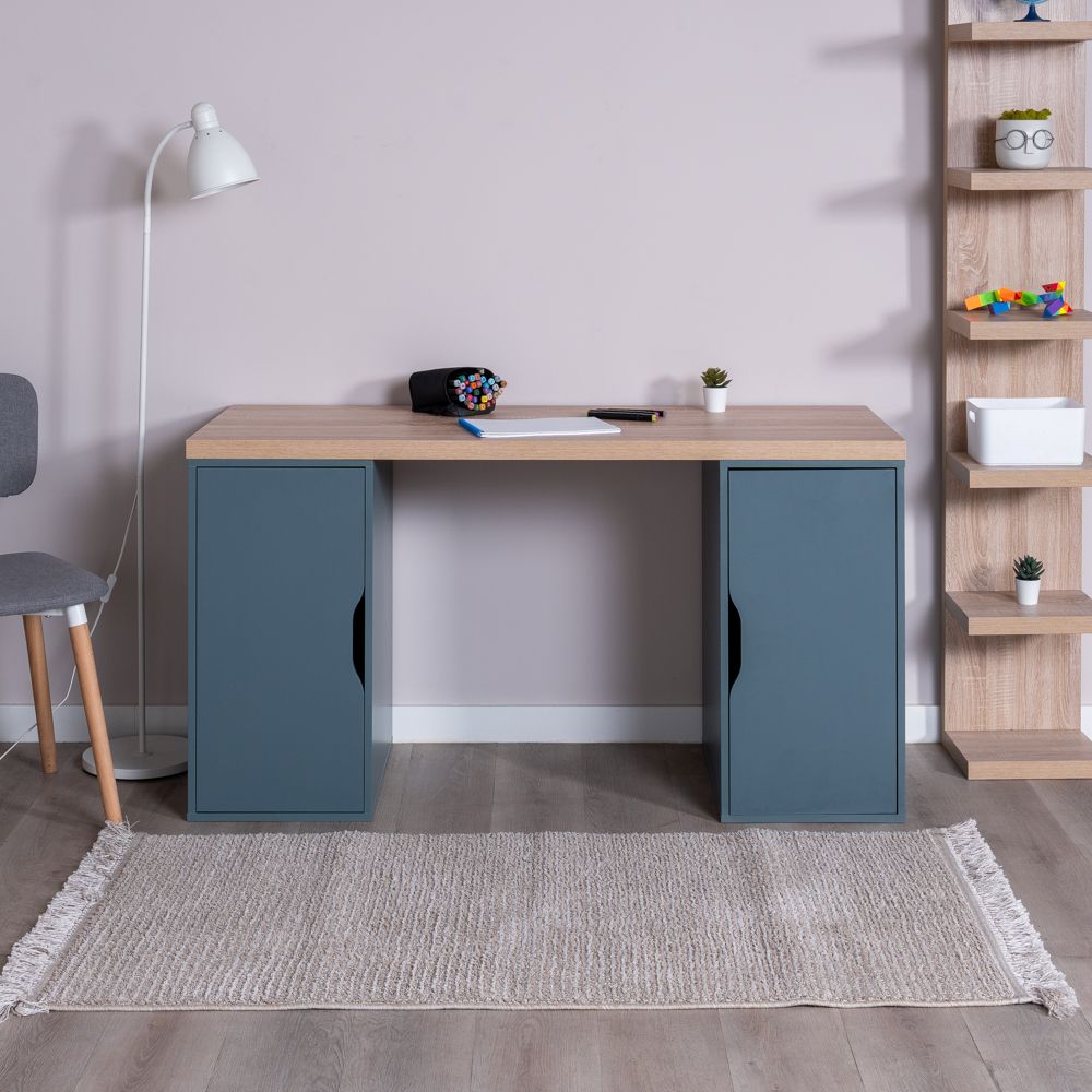 ИНГАР 2/ДВ/ДВ стол письменный 140x75x55, дуб беленый/серо-бирюзовый