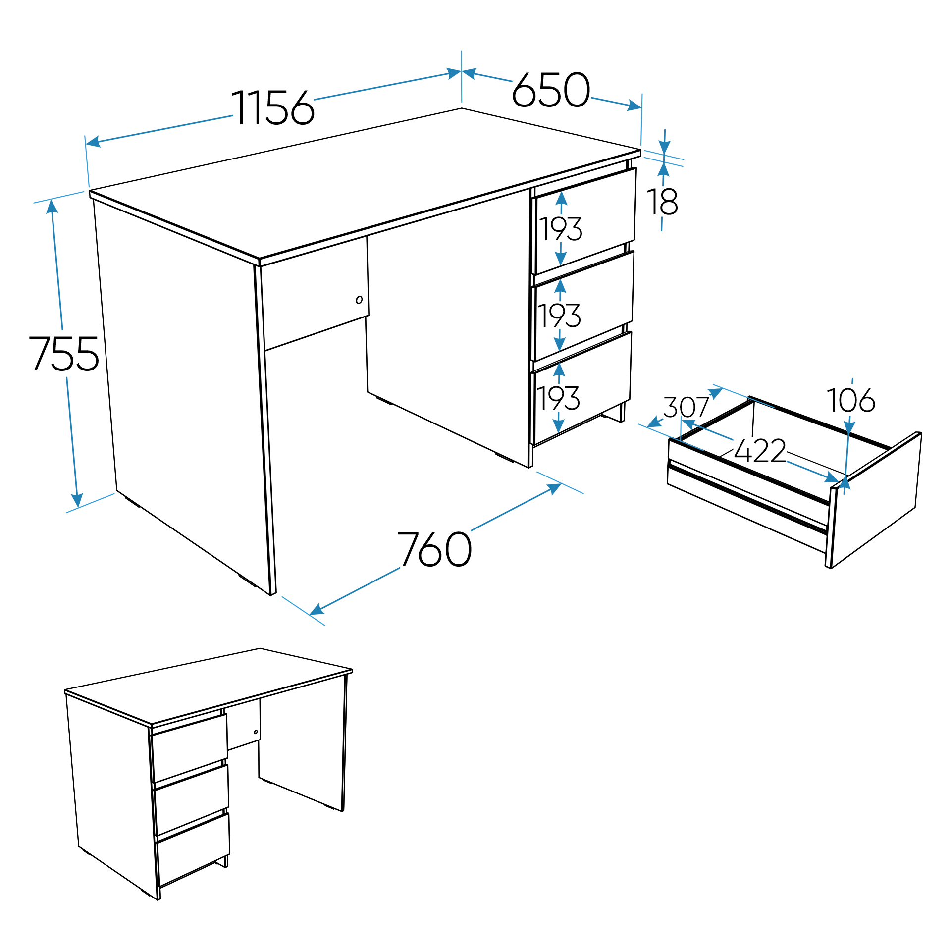 Стол письменный КАСТОР с тремя наружными выдвижными ящиками, 1510х650х750, цвет Серый. Изготовлен из кашированного ДСП толщиной 16 мм. Тумбу с ящиком можно разместить справа или слева под столешницей. Гарантийный срок для жилых помещений 24 месяца, для общественных помещений - 18 месяцев.