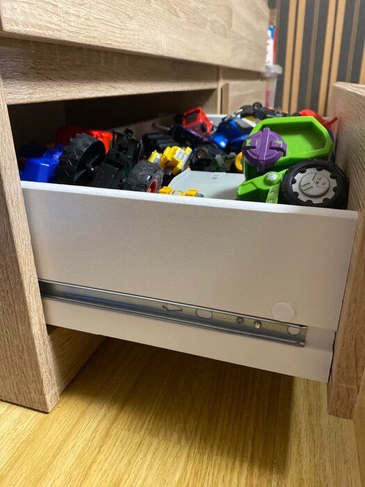 Очень качественно сделано. В целом за эти деньги все достойно, очень хорошо упаковано. Четкая инструкция. Фасады обклеены пленкой вкруговую. Низ и задняя часть полки не закрыта кромкой. Необычная сборка ящиков. Смотрится достойно. Упаковка отличная, углы и бока защищены, пришло в двух коробках 1 полка. Заказывала 2 штуки, обе одинаково хороши. Цвет и тон изделий совпадает . При закрытии ящиков остаётся щель