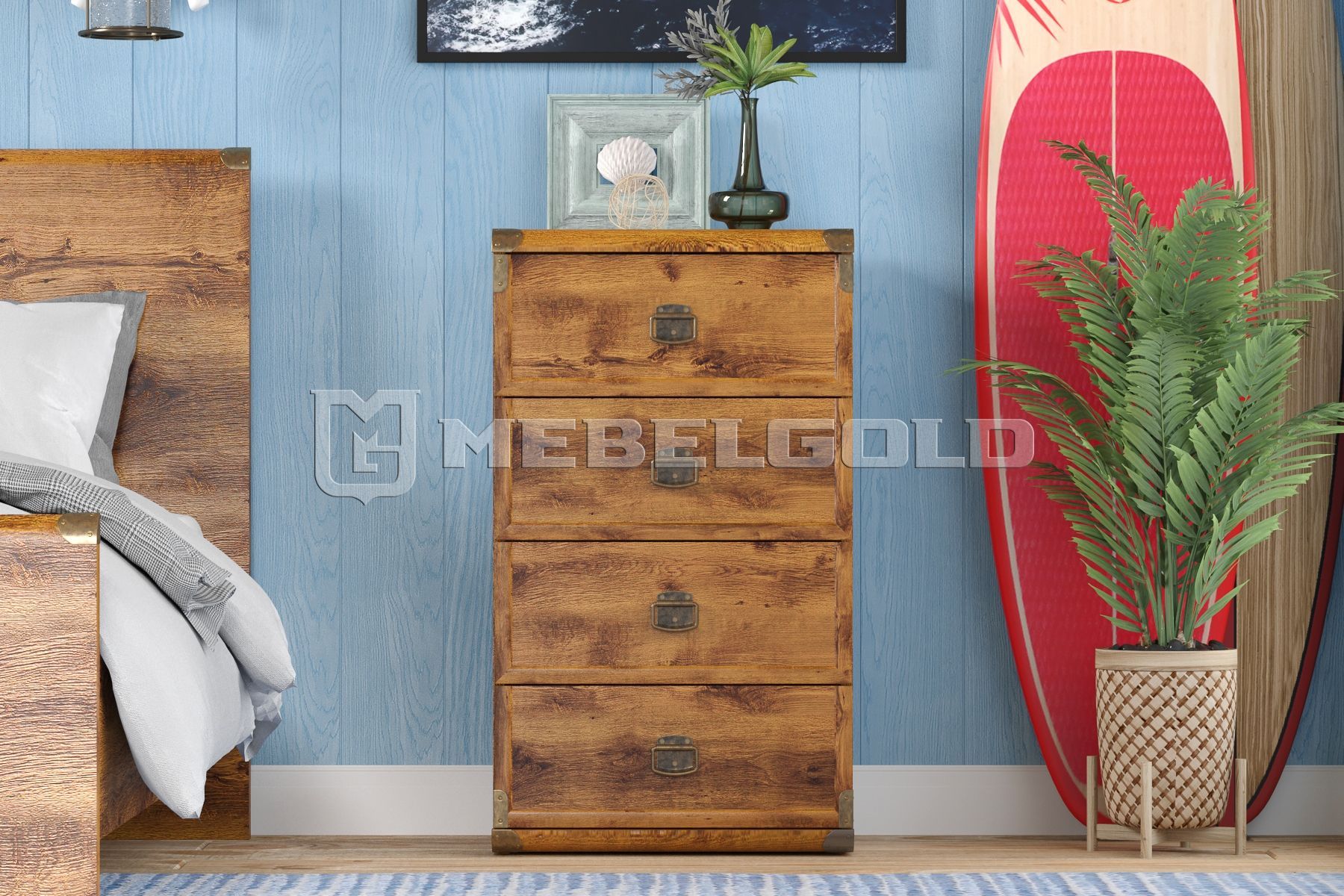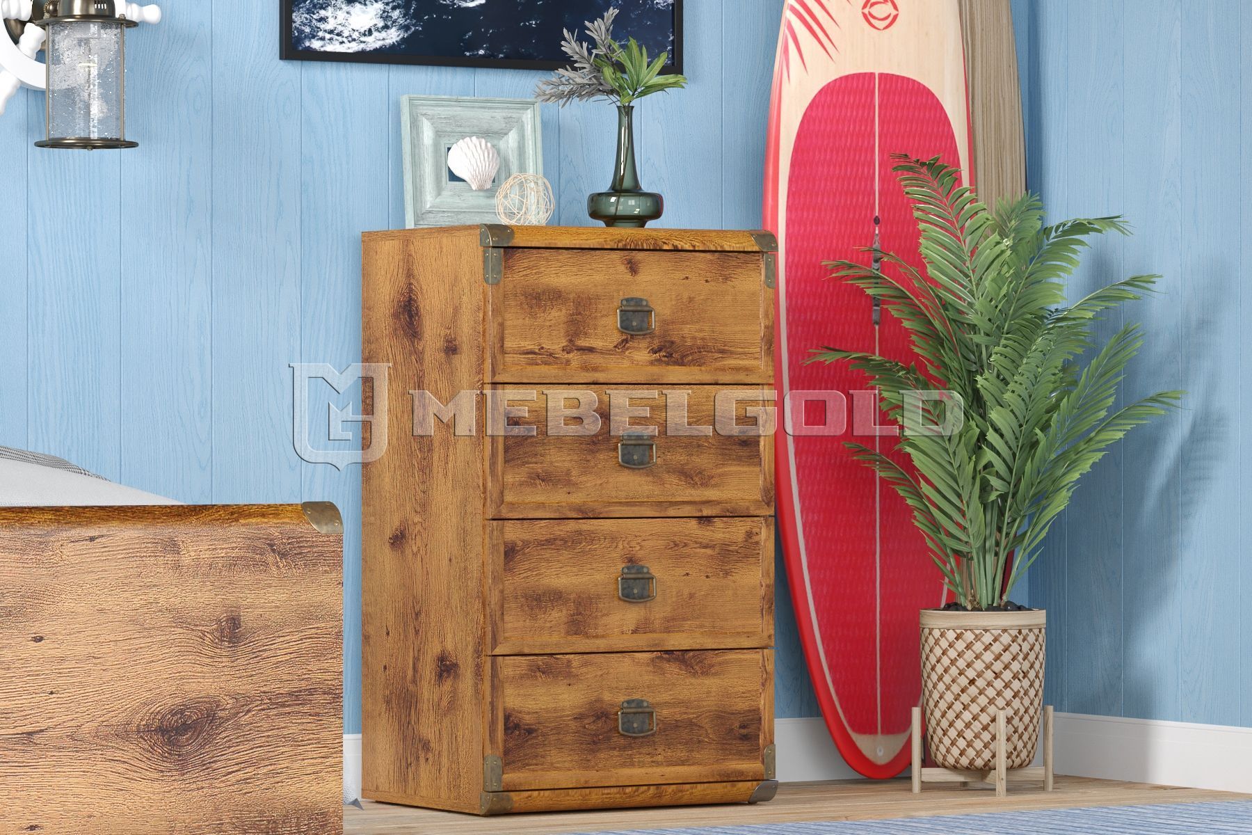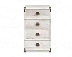 Узкий комод Indiana с четырьмя ящиками – непременный атрибут маленькой спальни или прихожей. Он имеет прямую конструкцию высотой 87 и шириной 50 см. Все четыре ящика располагаются параллельно друг другу и оборудованы роликовыми направляющими производства Германии. Чтобы открыть его, не потребуется прилагать особых физических усилий.