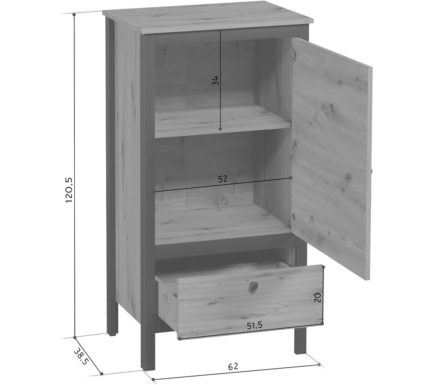 Тумба Loft высотой 120 см и шириной 62 см – оптимальное решение для небольших комнат урбанистического стиля. Здесь такая тенденция прослеживается в виде четких линий, правильных форм и минимального декора.