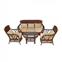 Изумительный по красоте комплект садовой мебели Secret De Maison из французской коллекции ANDREA, состоящий из стола, дивана и двух кресел с подушками, поможет создать гармоничное пространство на летней веранде, террасе загородного дома или приусадебной территории. Уникальные плетеные узоры, выполненные вручную с использованием нескольких видов традиционного индонезийского плетения, добавят ноты изысканности и индивидуальности в ваш интерьер. Удобный стол со столешницей из закаленного стекла практичен и элегантен. Стекло обладает повышенной прочностью, долговечностью, способно многие годы не утрачивать своей первоначальной привлекательности. Два эргономичных кресла и диван с мягкими подушками позволят удобно расположиться для продолжительного отдыха на свежем воздухе. Тканевая обивка подушек проста в уходе, прослужит вам долгие годы, сохраняя свой первоначальный вид. Мебель покрыта прозрачным матовым лаком, устойчивым к УФ-излучению, она прочна, надежна, устойчива к повышенной влажности. Комплект идеально сочетается с мебелью из коллекции ANDREA, поставляется в собранном виде. Страна-производитель: Индонезия