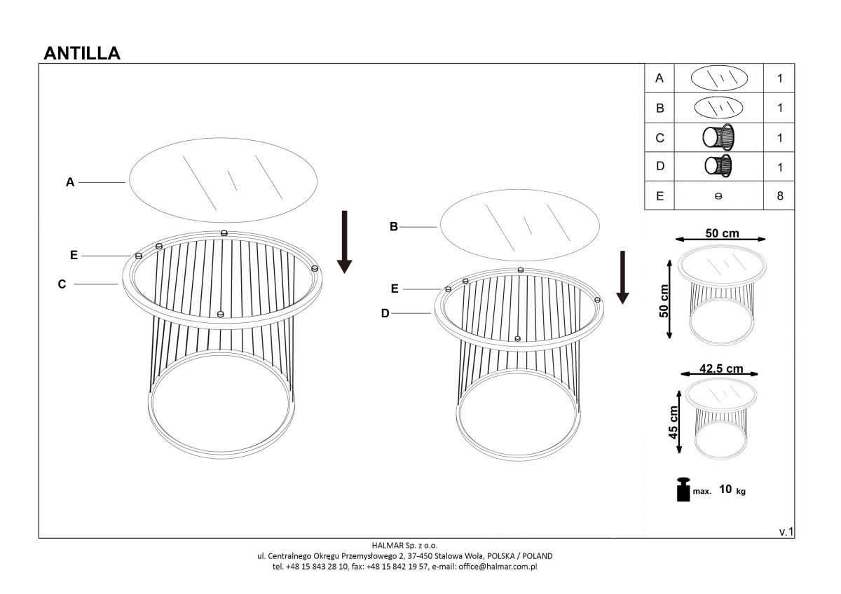 Комплект Halmar ANTILLA, 2 стола журнальных (дымчатый/черный)
