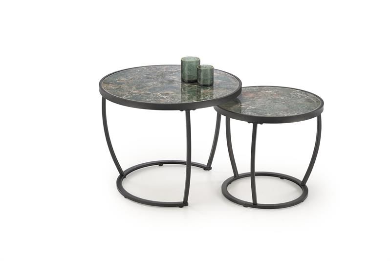 Комплект Halmar INES, 2 стола журнальных (зеленый мрамор/черный)