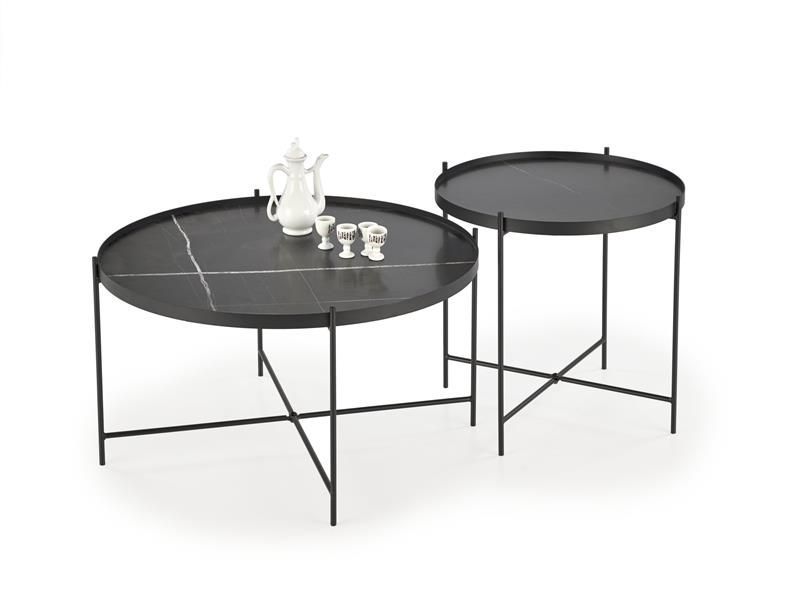Комплект Halmar JULIETA, 2 стола журнальных (черный мрамор/черный)