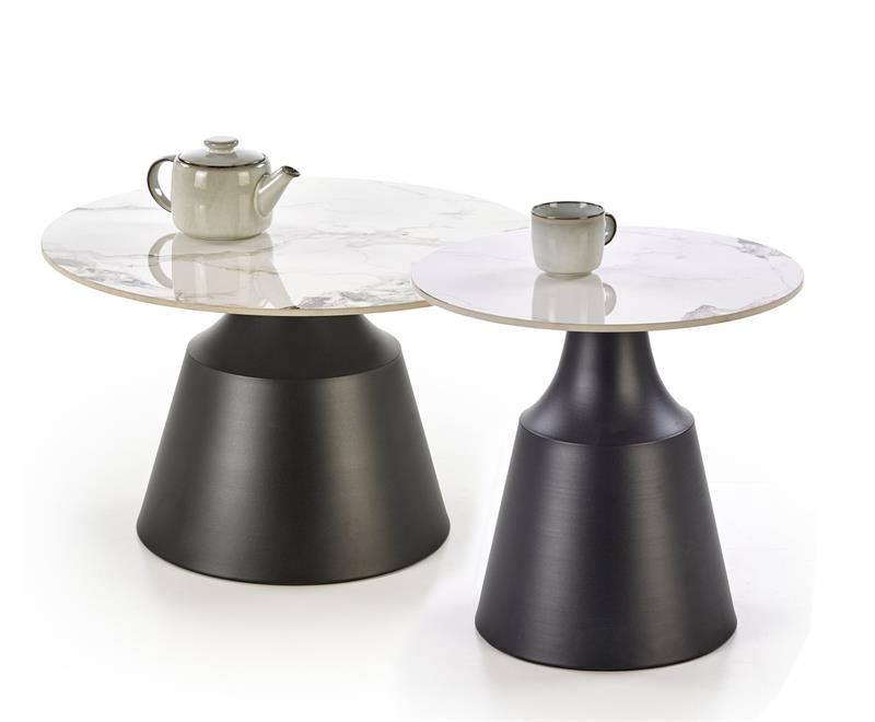 Комплект Halmar MAGNETA, 2 стола журнальных (белый мрамор/черный)