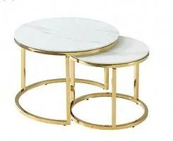 Комплект Signal MUSE II, 2 стола журнальных (эффект белого мрамора/золотой)