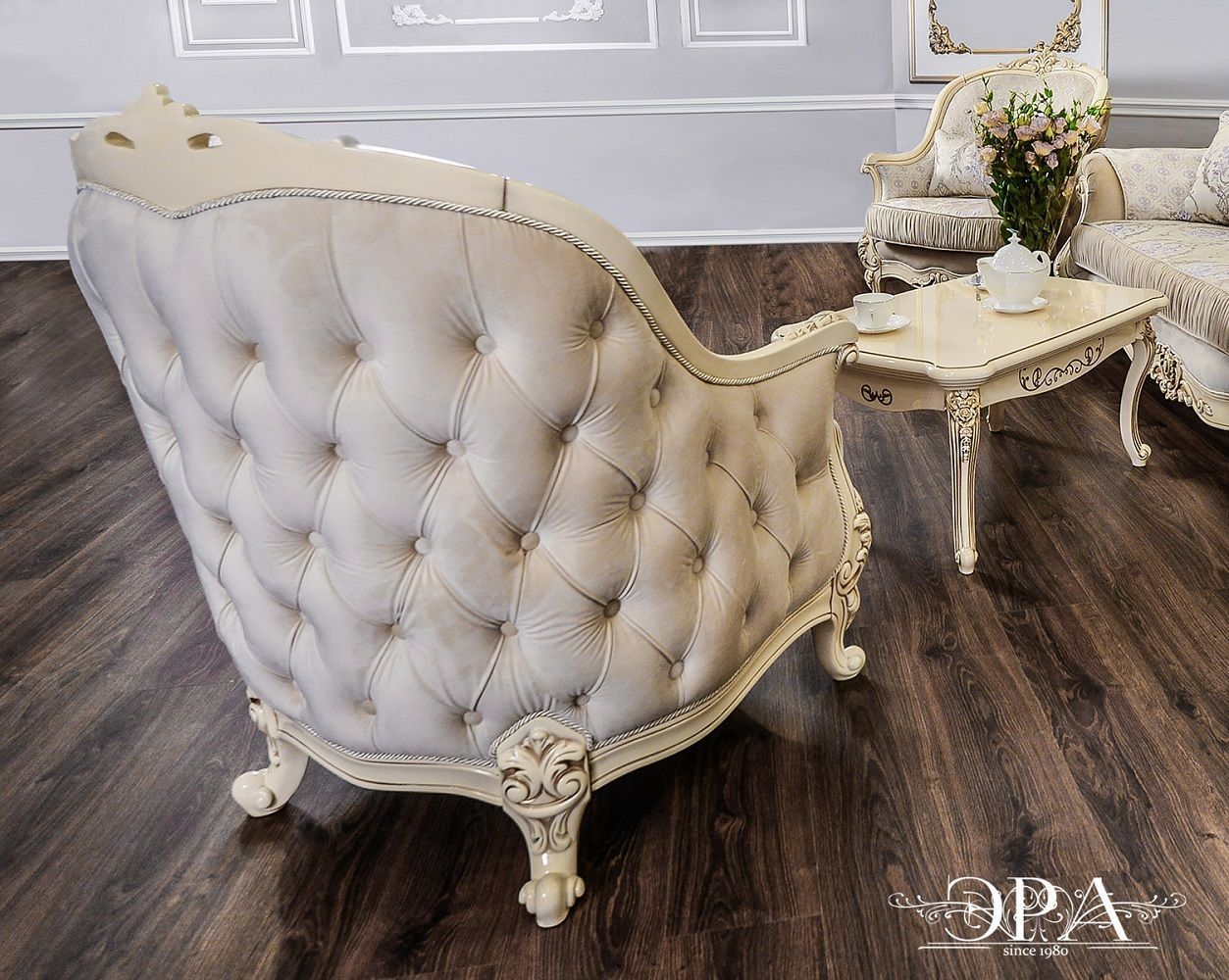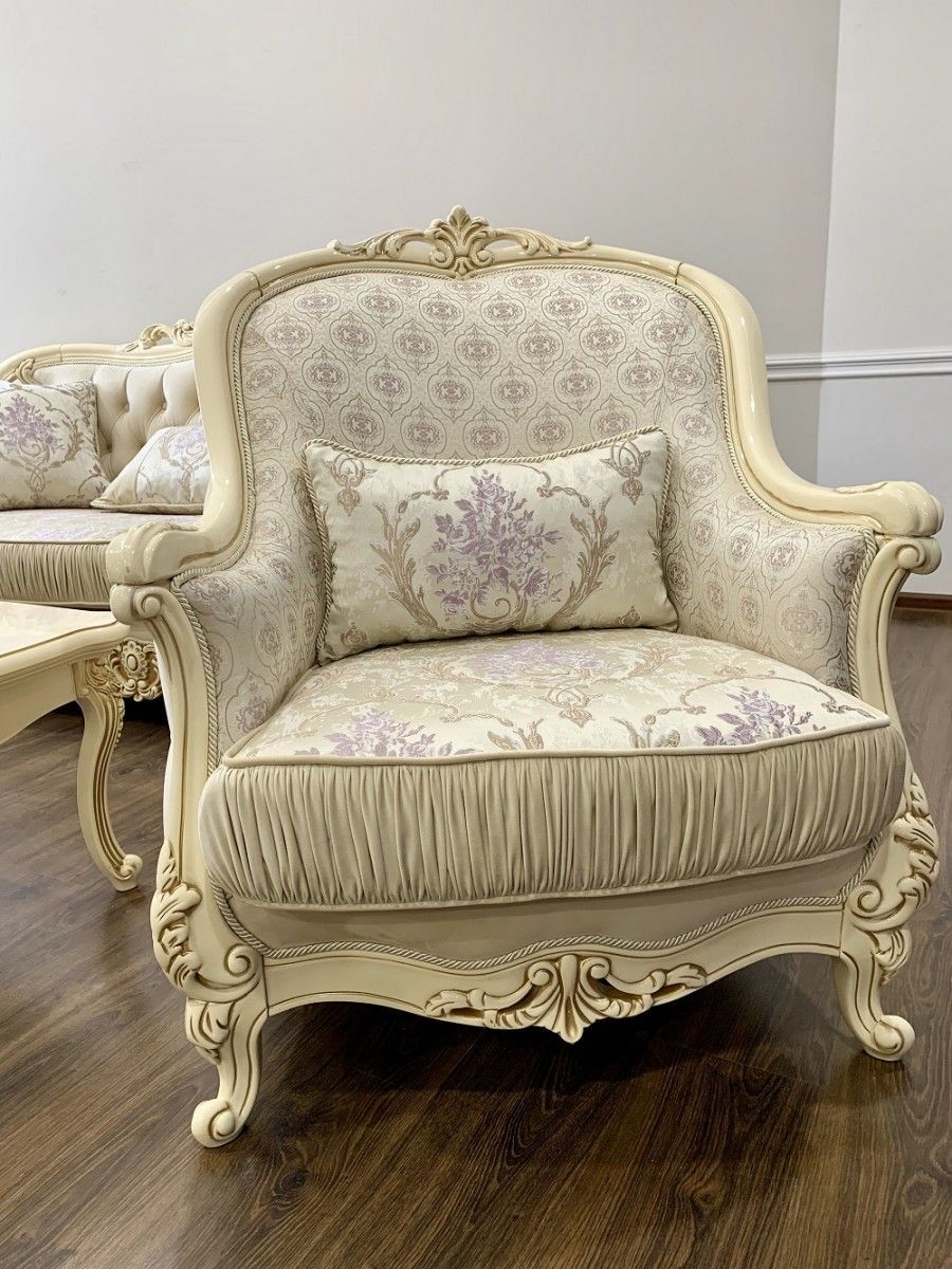 Классическое кресло «Мона Лиза» размером 90х105х90 см (ш/в/г) в цвете крем идеально впишется в интерьер гостиной, кабинета и домашней библиотеки классического стиля. Его можно использовать отдельно, как акцент, или в комплекте с диваном и другой мебелью серии «Мона Лиза».