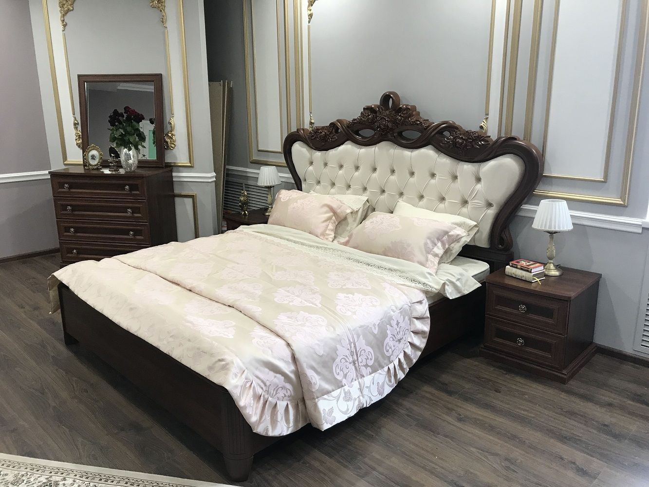 Производитель внимателен к деталям — это подчеркивается великолепной пластикой линий и мягким патинированием. Кровать смотрится эстетично, нарочитые украшения отсутствуют. Интерьер с мебелью «Афина» выглядит как единая композиция — стильно и гармонично. Изделия по цене от производителя можно купить в Ставрополе. Клиентам доступна доставка в любую точку РФ.