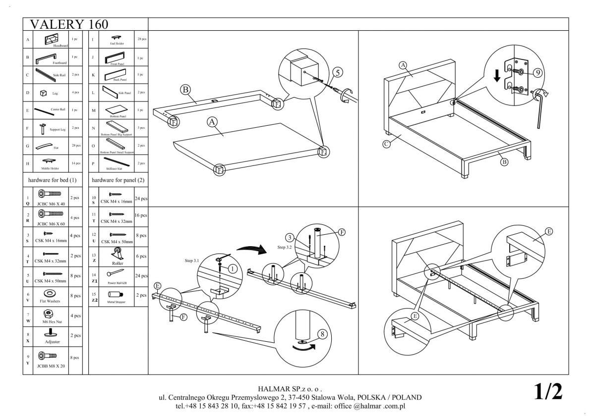 Кровать Halmar VALERY (серый/орех) 160/200