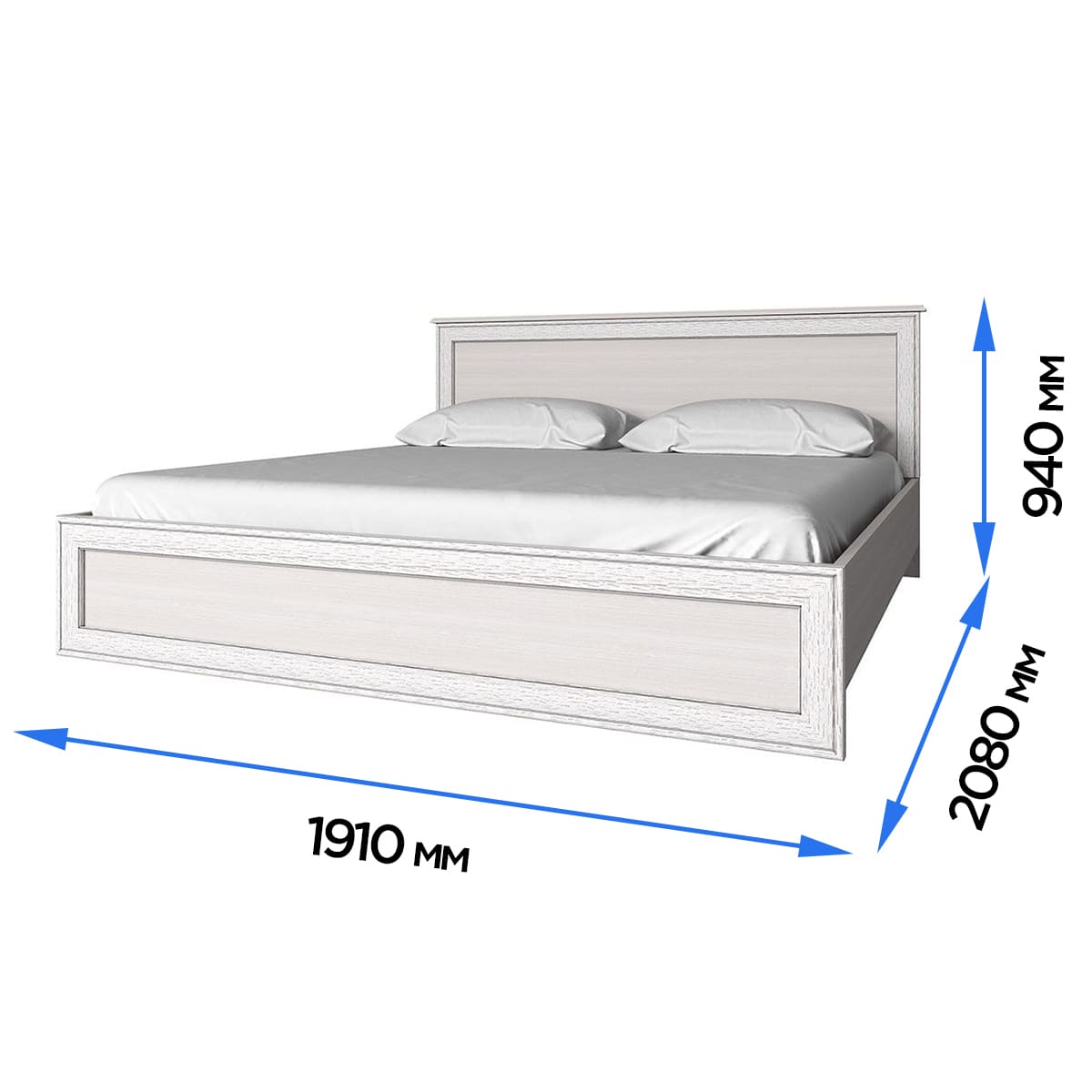 Модель 180 Tiffany относится к серии двуспальных кроватей, изготовленных белорусским производителем Anrex. Она состоит из прямоугольного основания, высокого изголовья и низкого изножья. Ее фасады окрашены в светлый цвет вудлайн кремовый, а по всему периметру проходит филенка и рамка с эффектом состаренного покрытия.