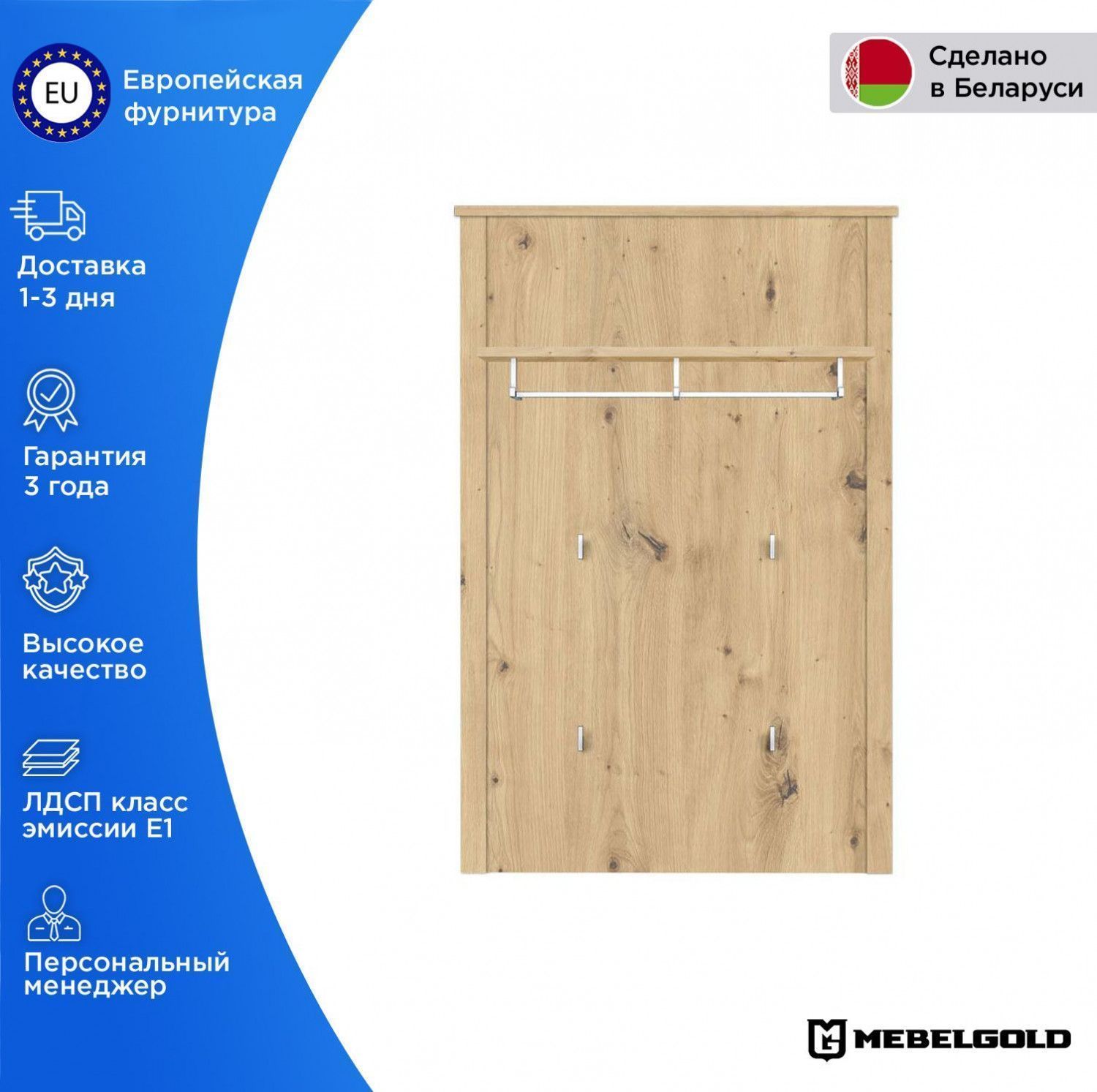 Настенная вешалка Helga с матовой поверхностью в цвете дуб артизан и крючками серебристого цвета гармонично сочетается с темной и светлой стеновой отделкой. Она функциональна и компактна, удобна в применении и уходе. Лучше всего вешалка «Хельга» смотрится вместе с тумбой этой коллекции. При необходимости ее всегда можно дополнить шкафом, комодом и зеркалом.