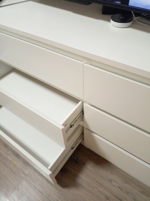 Вполне достойный комод. Не снимаю звезду , тк вопрос с продавцов был оперативно решен в максимальные сроки. Комод приходит в разобранном виде в трех коробках, рекомендую сразу их распаковывать и смотреть все детали. Так вот, по выше написанной рекомендации мы это не сделали и когда собрали весь комод, в третей комплектации обнаружили сосколы и поцарапанный фасад одного из ящика (фото) при чем видно что явно меняли артикул и еще так по уродски это делали. Разбираться не стали кто что и чья вина . Возвращать комод нам не интересно , тк он полностью собран. Продавец предложил два варианта, один из которых нас полностью устроил, дослали полностью коробку где бы фасад , который мы собственно говоря и заменили