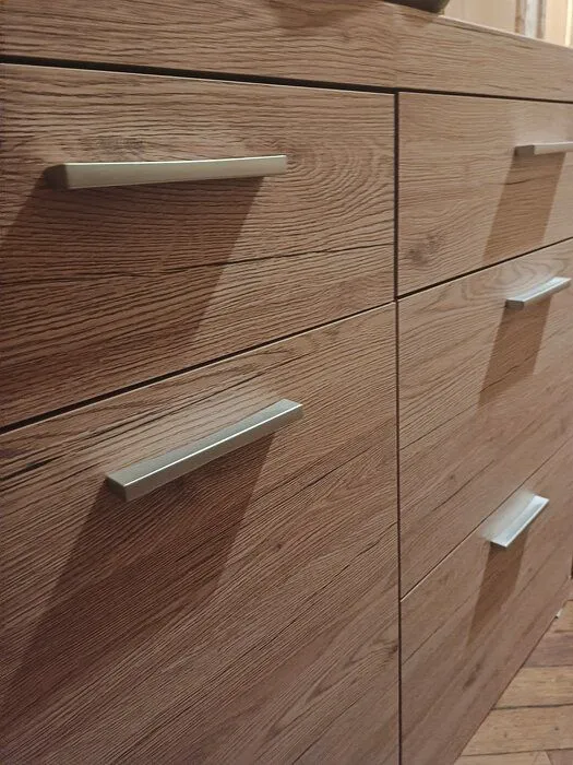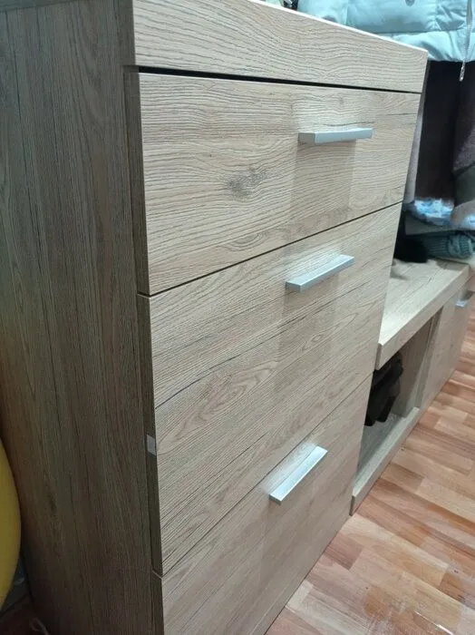 Отличная не хлипкая ЛДСП, прекрасная фурнитура, надежные магниты. Усиленный выдвижной ящик. Ничего не люфтит, хорошая инструкция. Можно подобрать в качестве компаньона тумбу или шкаф из этой же линейки.