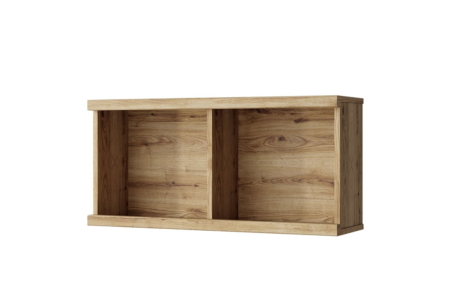 Открытая навесная полка Doorset 2N из ЛДСП имеет ширину 80 см и высоту 38 см. Она способна выдержать вес до 3-4 кг и обеспечить свободный доступ к хранимым предметам. Примером естественности и привлекательного дизайна является древесный орнамент в светло-коричневом цвете дуба наварро. Такая отделка везде найдет достойное применение: в спальне, прихожей, детской, гостиной и домашнем офисе.