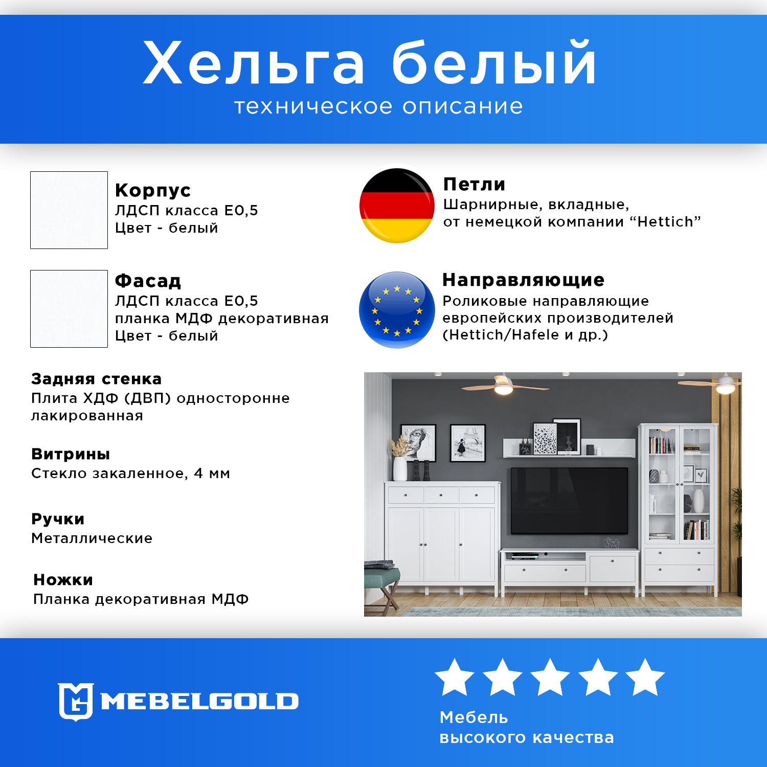 Материал фасадаВысококачественный МДФ, ЛДСП