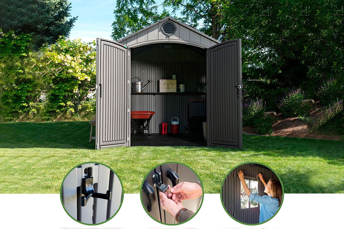 Пластиковый сарай большого размера Woodlook 8`x 10` порадует вас своей вместимостью, быстротой и легкостью сборки, удобством транспортировки.