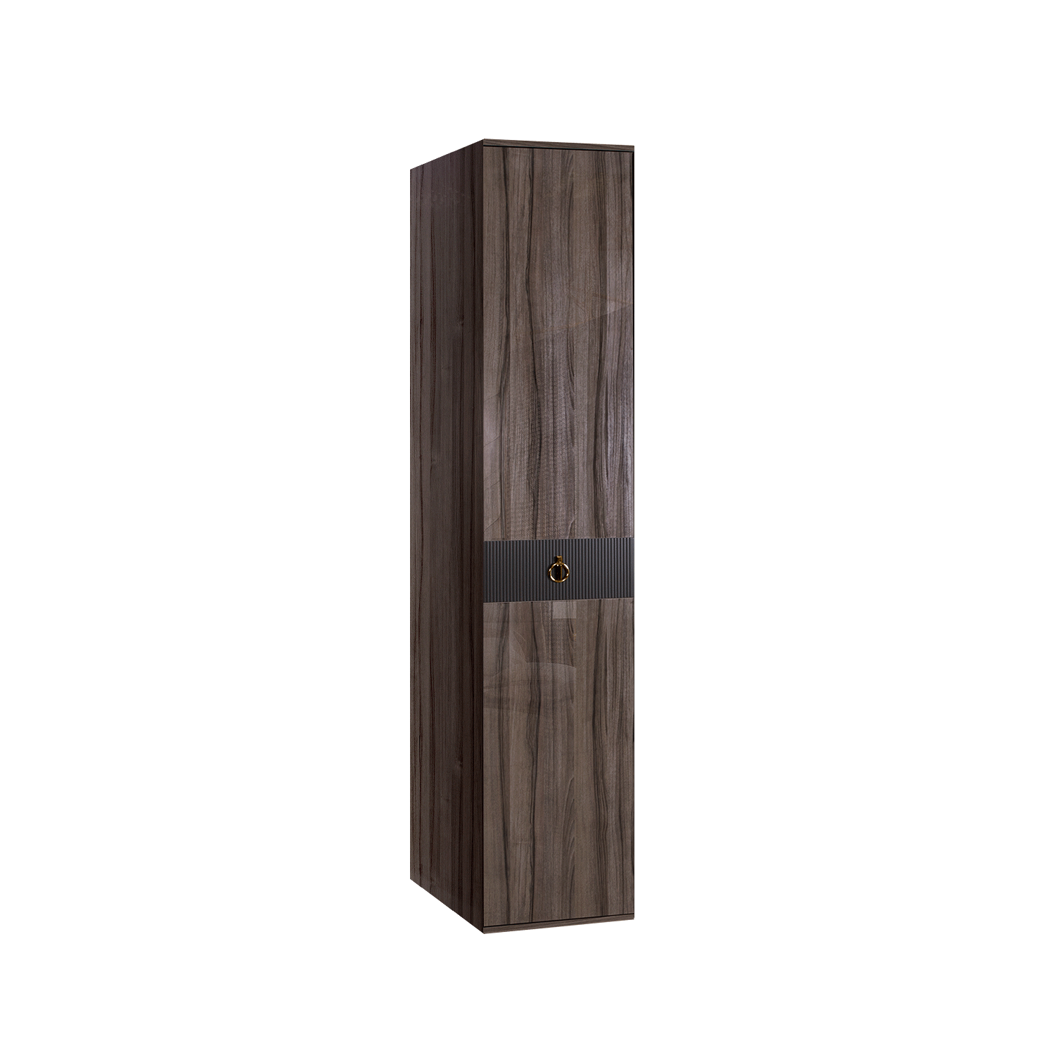 Узкий шкаф Rimini Solo с одной дверцей имеет высоту 232 см и ширину 45 см. Его глубина составляет 60 см, такая модель подходит для небольших гостиных и прихожих, выполненных в современном стиле и арт-деко. Лакированная поверхность шкафа в комбинации с эффектным оттенком приобретает праздничный вид и проецирует свою красоту в интерьеры.