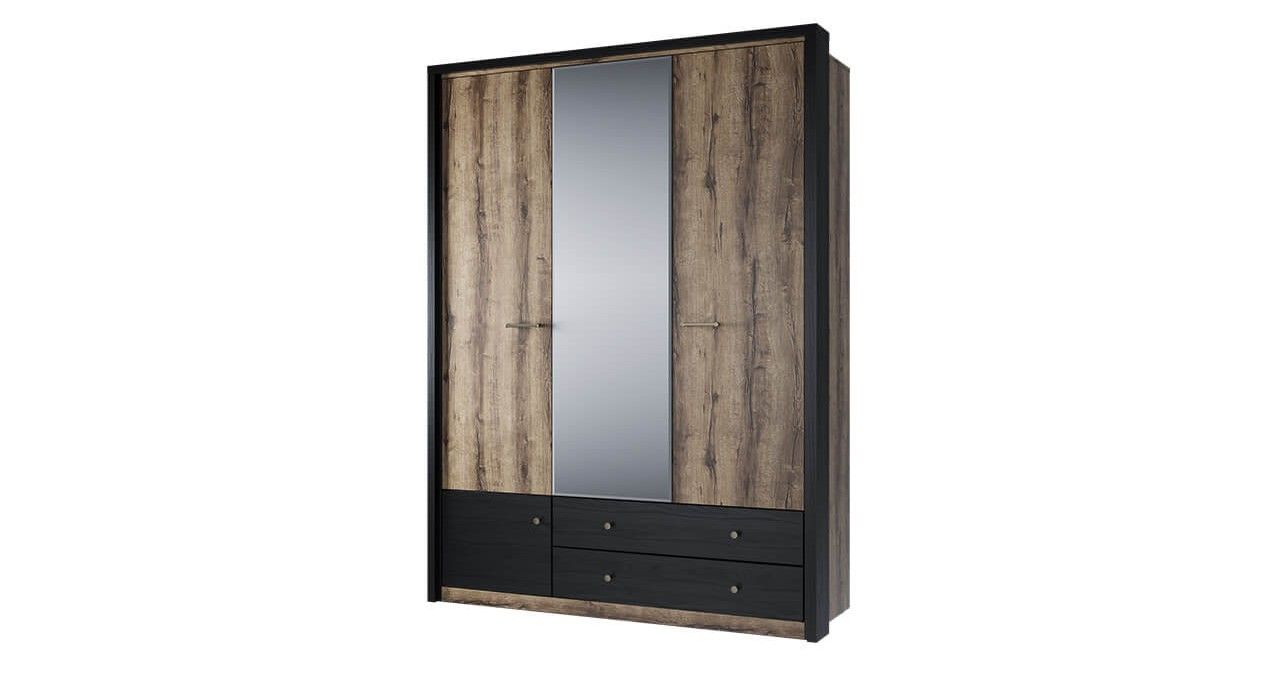При изготовлении трехстворчатого шкафа Jagger белорусский производитель Anrex польскую фурнитуру GTV и GAMET. Яркий и самобытный, представленный в темной цветовой гамме, он уместно смотрится в обстановке спальни. Более эффектно он выглядит вместе с другой мебелью из коллекции «Джаггер».