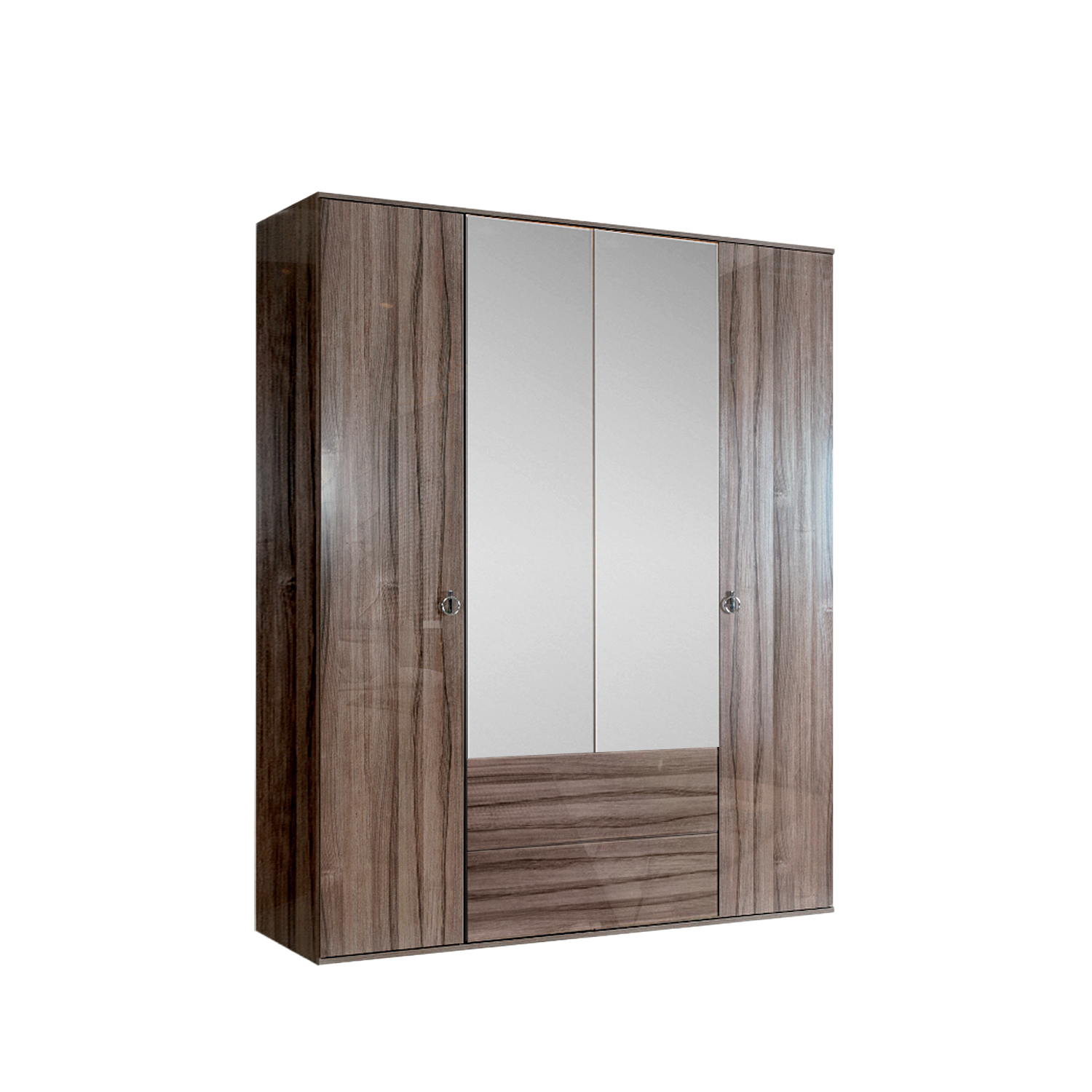 Шкаф 4-х дверный с зеркалом, с ящиками Римини (Орех империя/Серебро) РМШ1/41