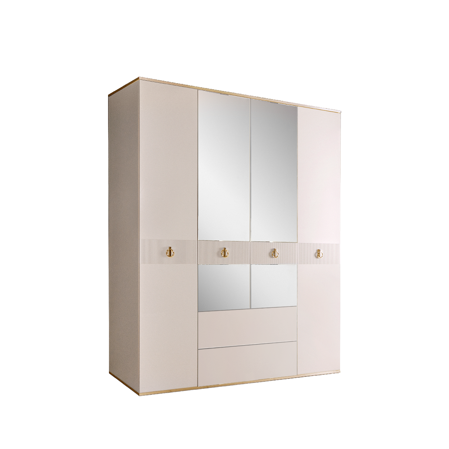 Шкаф 4-х дверный с зеркалом, с ящиками Римини СОЛО (Слоновая кость/Золото) РМШ1/41(s)