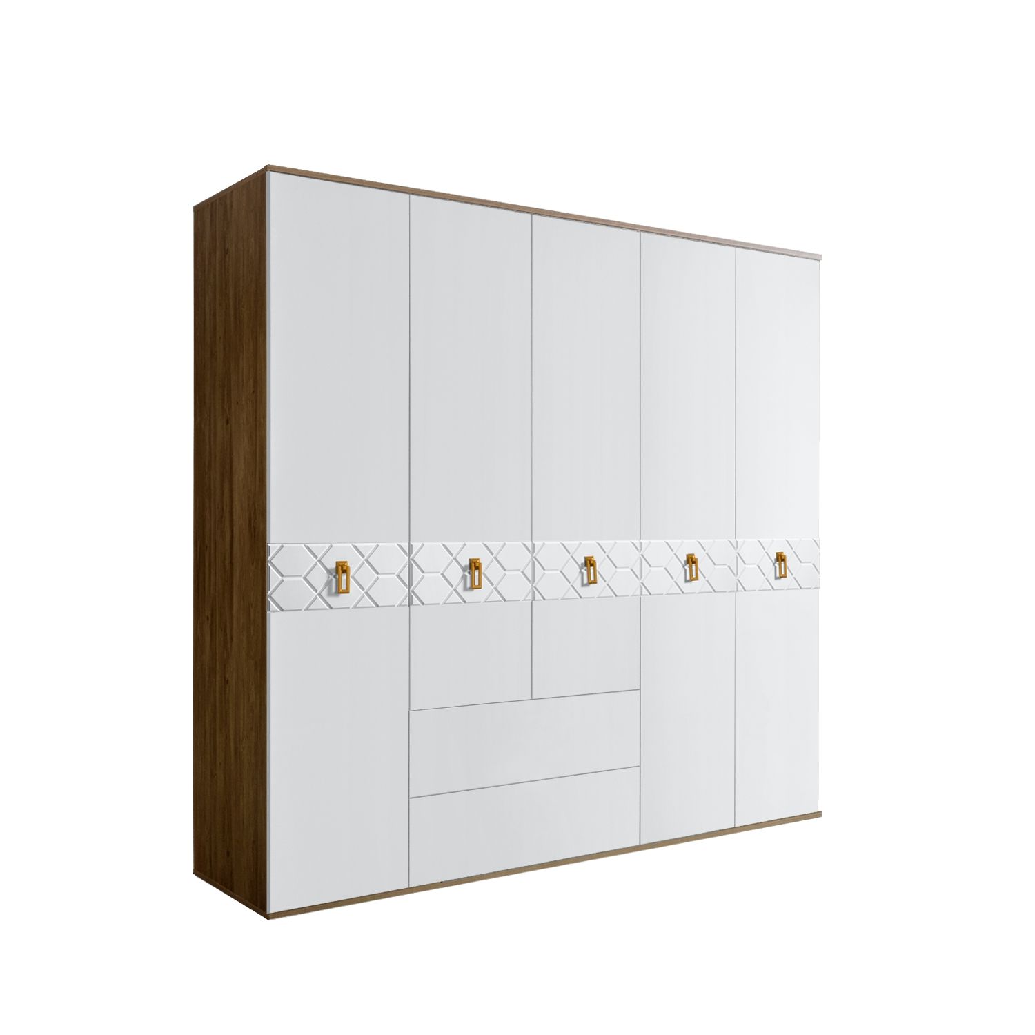 Шкаф 5-ти дверный с ящиками, Bogemia Woodline Fa (Белый/Золото) БМШ2/51(Fa)