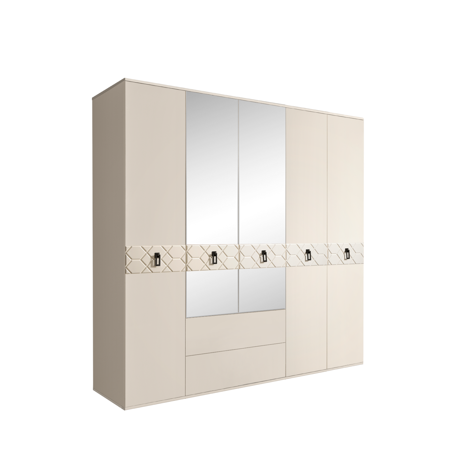 Шкаф 5-ти дверный с зеркалами, с ящиками, Bogemia Farfalle (Слоновая кость/Черный) БМШ1/51(Fa)