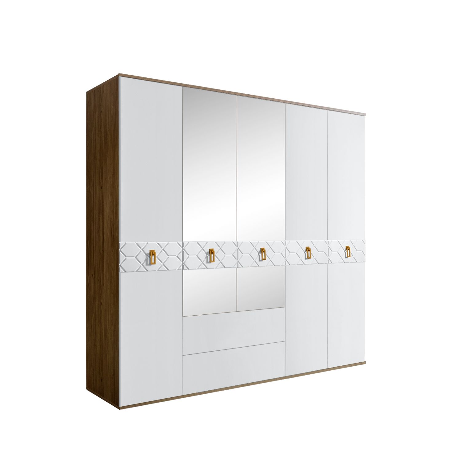 Шкаф 5-ти дверный с зеркалами, с ящиками, Bogemia Woodline Fa (Белый/Золото) БМШ1/51(Fa)