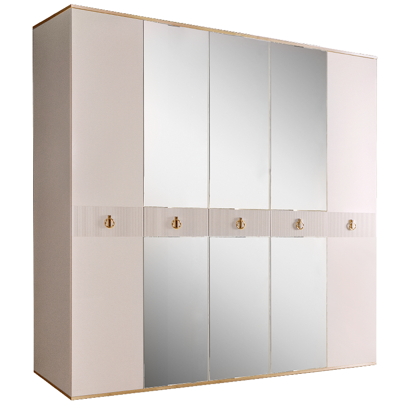 Шкаф 5-ти дверный с зеркалом Римини СОЛО (Слоновая кость/Золото) РМШ1/5(s)