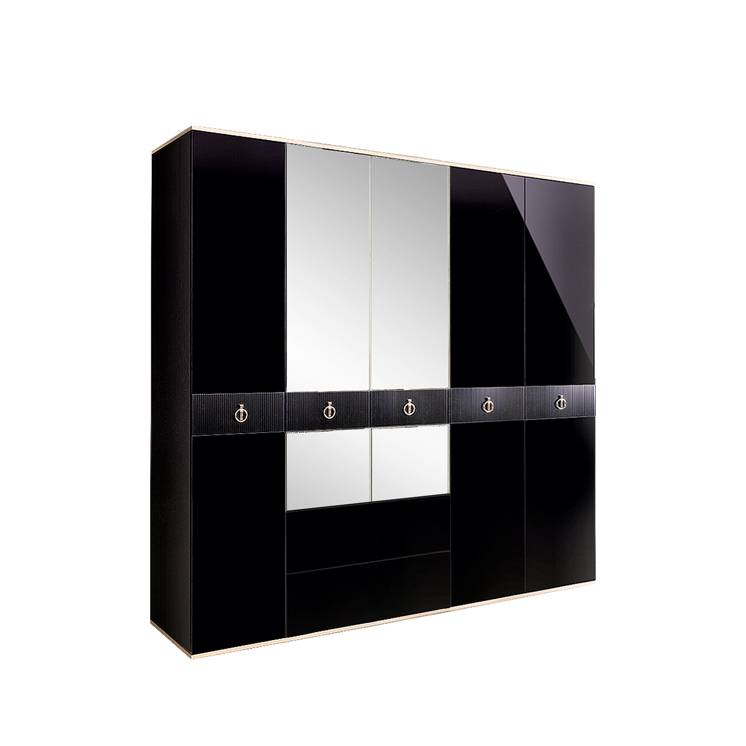 Шкаф 5-ти дверный с зеркалом, с ящиками Римини СОЛО (Черный/Серебро) РМШ1/51(s)