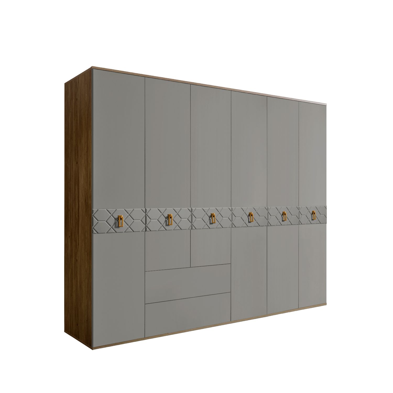Шкаф 6-ти дверный с ящиками, Bogemia Woodline Fa (Серый/Золото) БМШ2/61(Fa)
