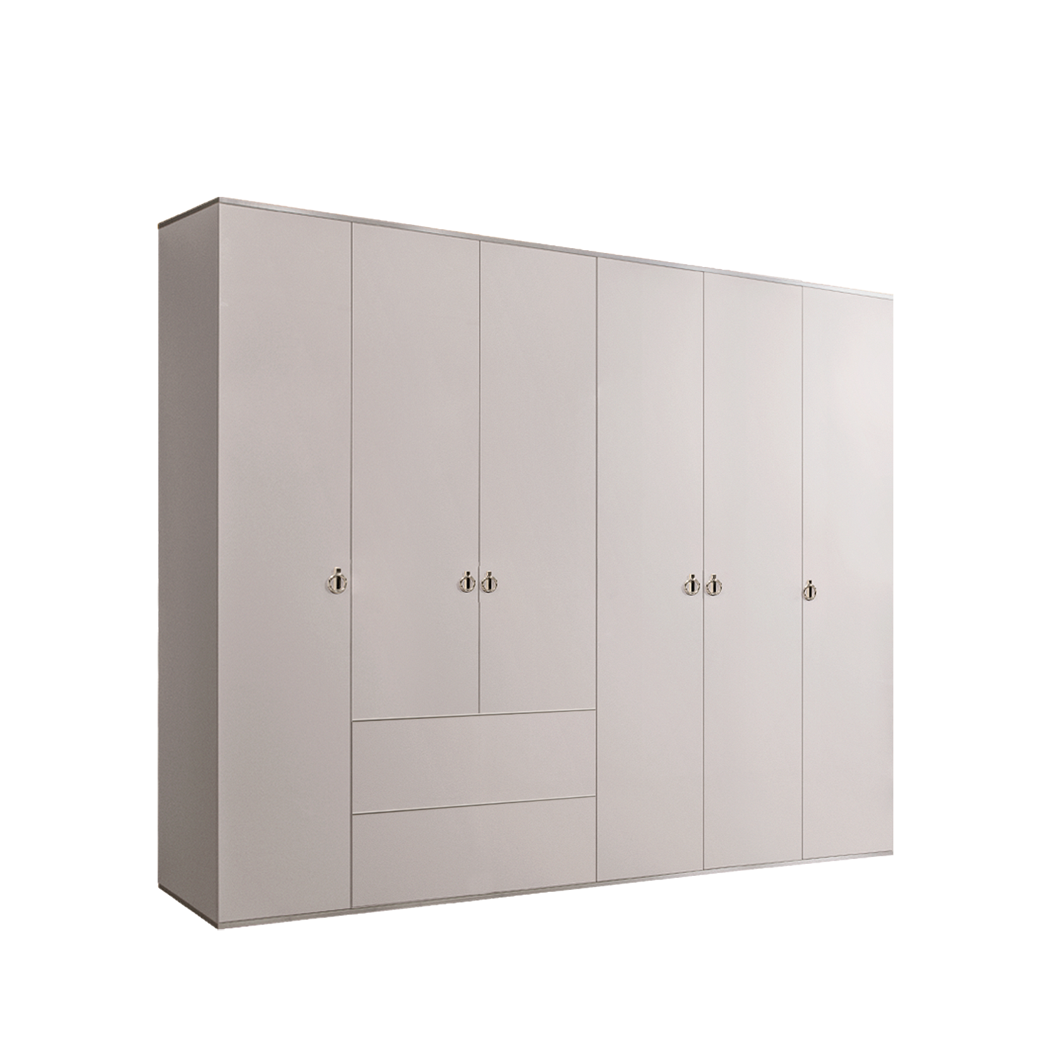 Шкаф 6-ти дверный с ящиками Римини (Слоновая кость/Серебро) РМШ2/61
