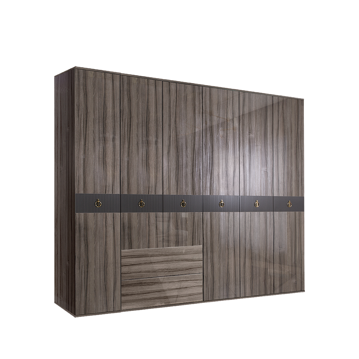 Шкаф 6-ти дверный с ящиками Римини СОЛО (Орех империя/Золото) РМШ2/61(s)