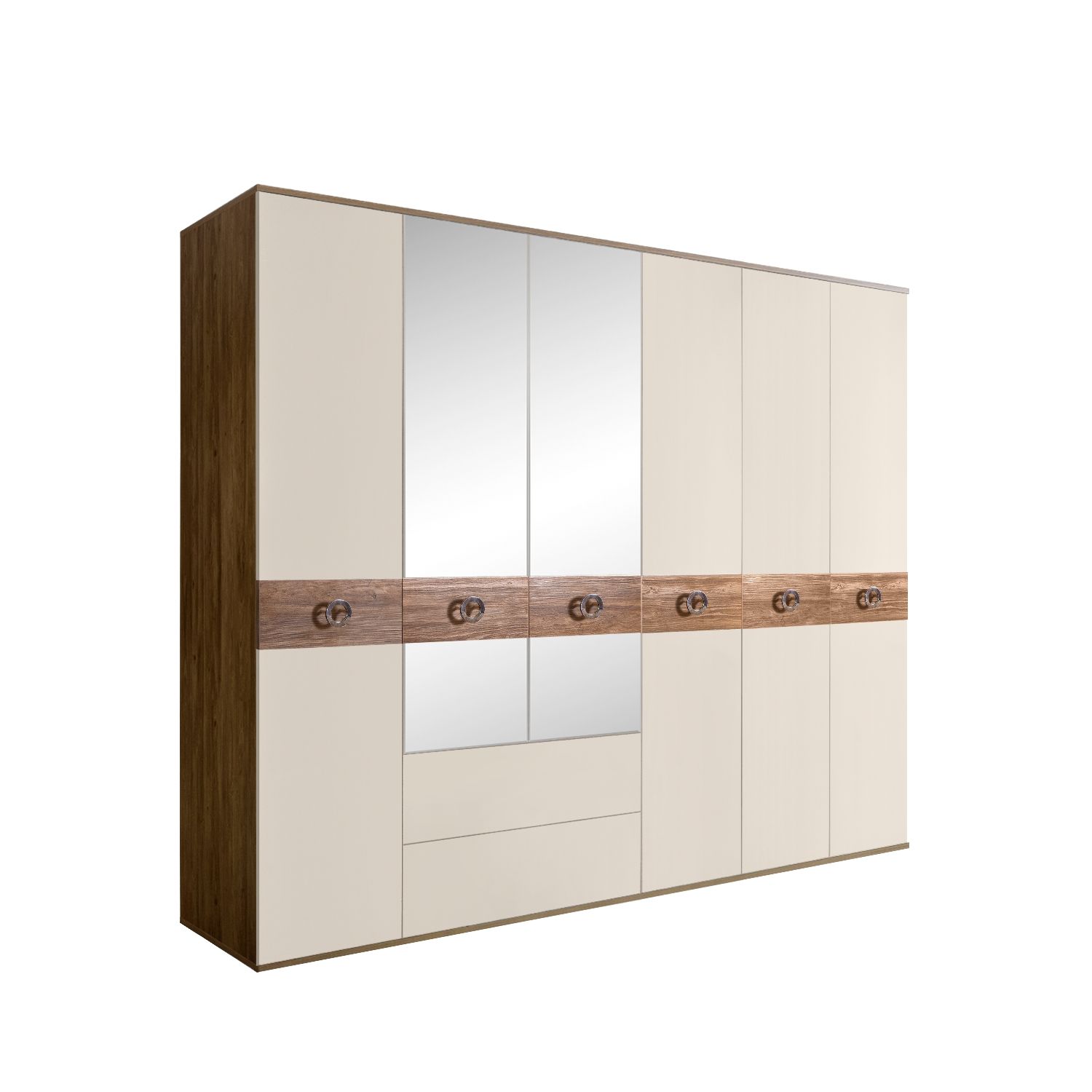 Шкаф 6-ти дверный с зеркалами, с ящиками, Bogemia Woodline Wood Fi (Слоновая кость/Хром) БМШ1/61(Wo)