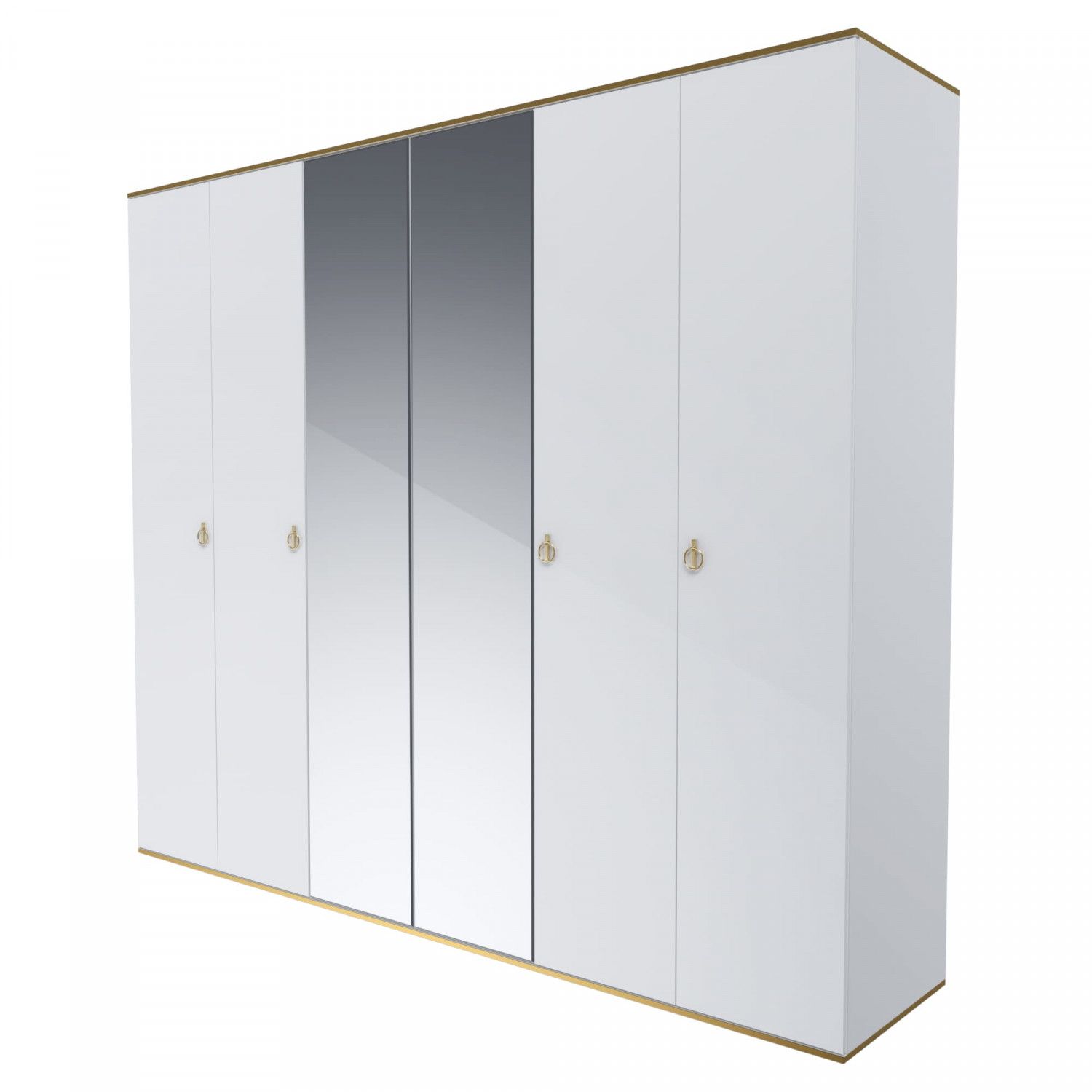 Шкаф 6-ти дверный с зеркалом Римини (Белый/Золото) РМШ1/6
