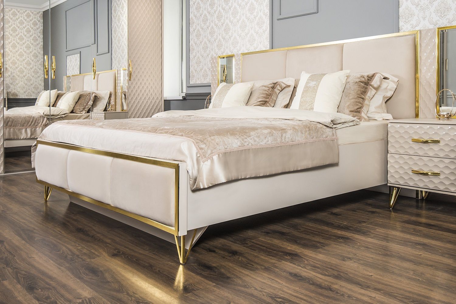 Кровать с декоративными рамками на изголовье и изножье под латунь– делает ее центром притяжения! Ведь кровать в спальне главный элемент мебели!
