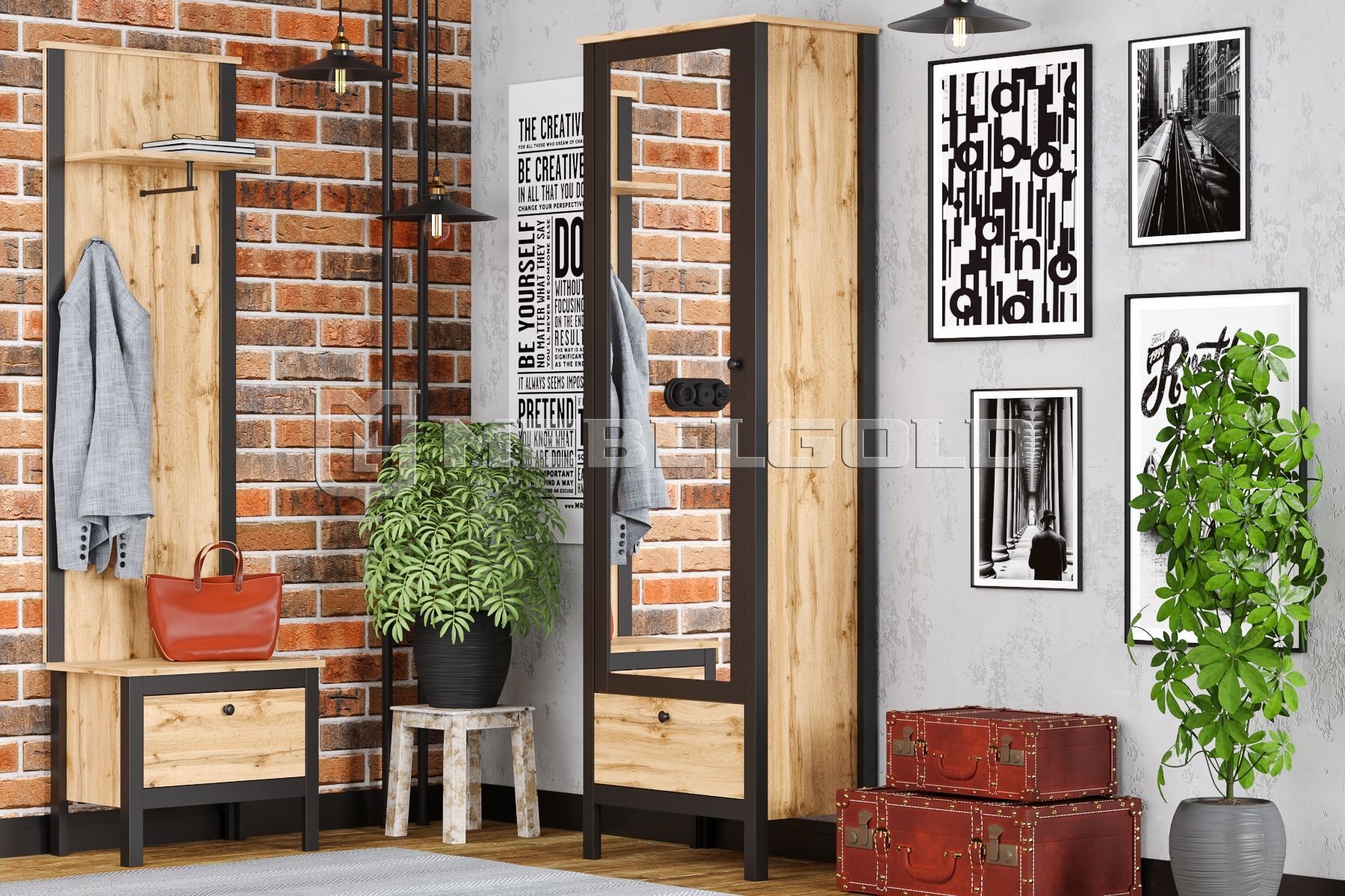 Современный шкаф с зеркалом в стиле Loft – выбор людей, ценящих минимализм и функциональность. Эта узкая и вместительная конструкция высотой 192 и шириной 62 см уместится в самое маленькое пространство и создаст компактную зону для хранения разного типа вещей. Внутри установлено 3 отделения, есть стационарная и переставная штанга для одежды и выдвижной ящик на шариковых направляющих.