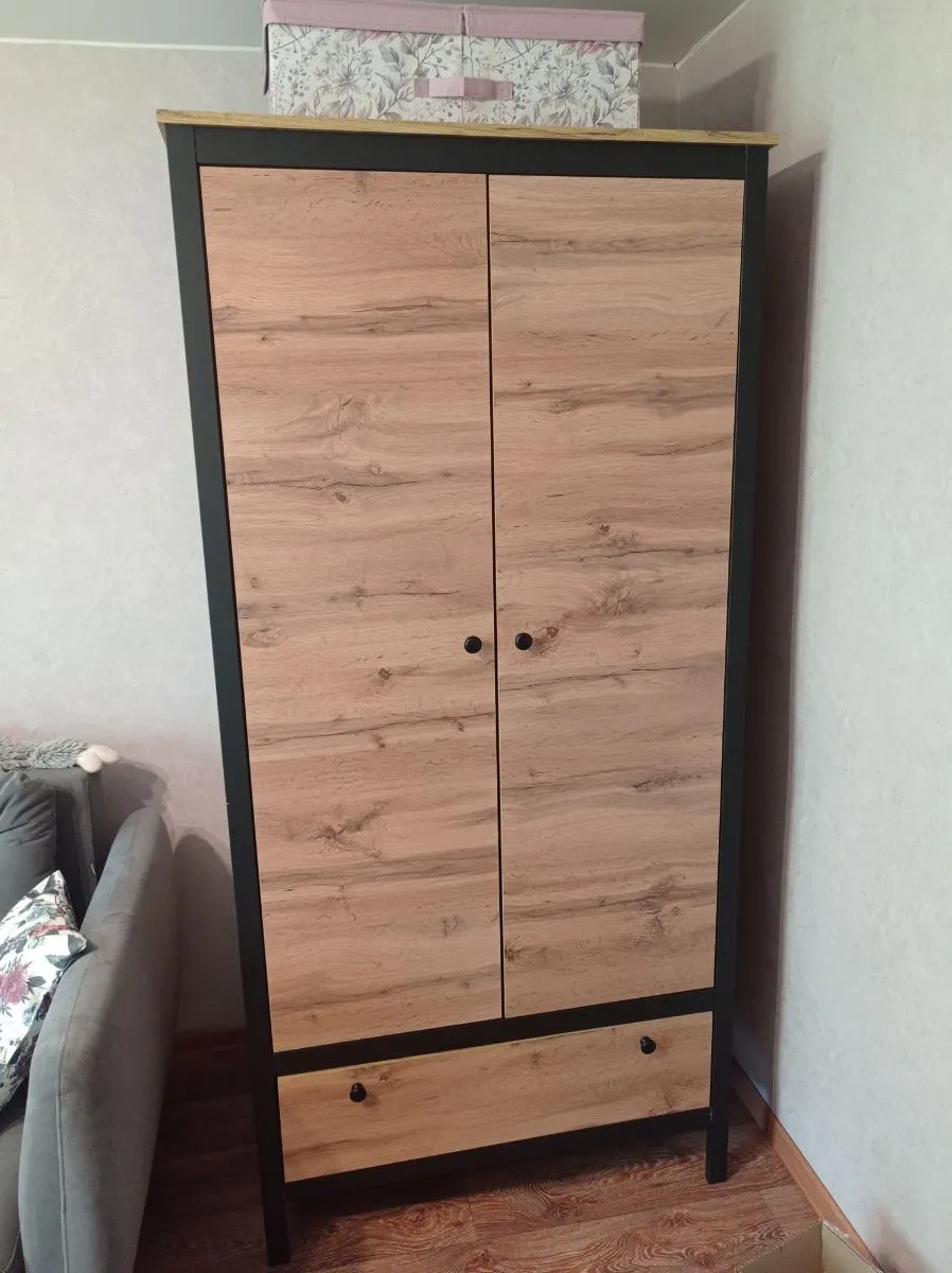 Платяной двустворчатый шкаф можно поставить в любую жилую комнату или прихожую. При высоте 192 см и ширине 92 см он займет небольшое пространство и позволит навести порядок в доме. Выдвижной ящик глубиной 60 см добавит изделию еще больше функциональности и обеспечит беспрепятственный доступ к самым дальним углам. Его дно усилено металлической планкой, что исключает провисание даже при полной загрузке.