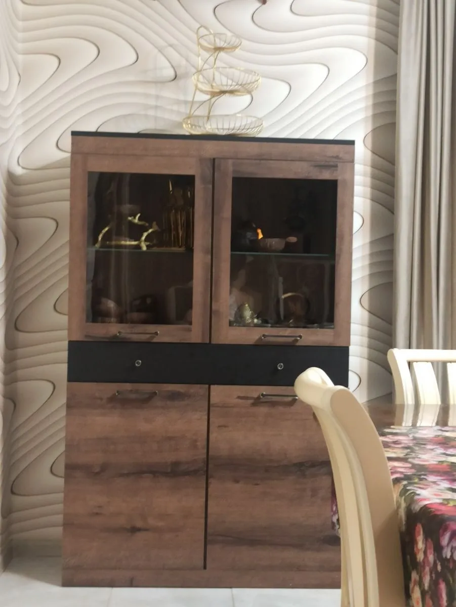 Качество изделия и доставка идеальны. Только светодиодов нет. Мы даже сумели изменить модель: Стекло наверху, а глухие дверцы внизу. Но подсветку сами будем доделывать и делать... А было бы идеально!