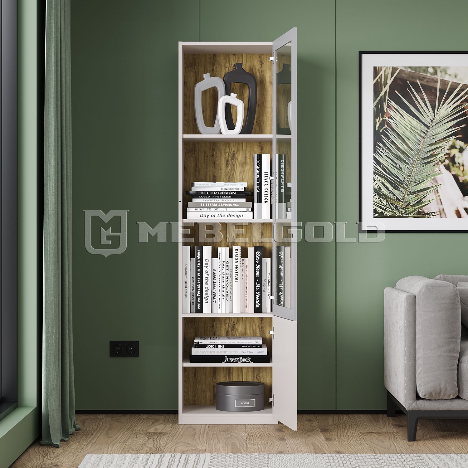 Одностворчатый шкаф с витриной Modern 1V1D/52 выполнен из ЛДСП и укомплектован четырьмя полками. Дверцы установлены на петли с доводом, обеспечивающим медленное и бесшумное закрывание. Эта модель шириной 52 см впишется в небольшое пространство гостиной и рабочего кабинета современного стиля. При необходимости ее дверь можно перевесить на левую или правую сторону. Возможна подсветка светодиодной лентой.