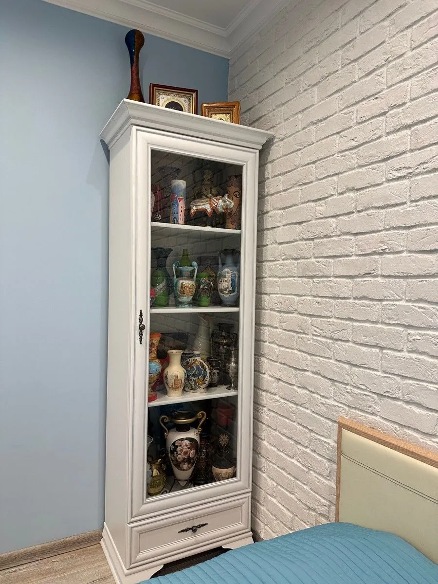 Для тех, кого интересует больше, чем просто небольшой шкаф: в этой коллекции есть угловые витрины, а также модели с двумя дверцами.