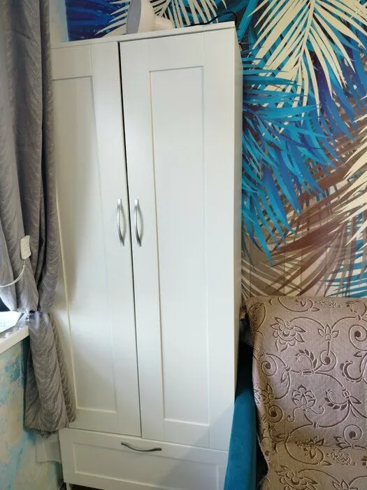 Шкаф СИРИУС для одежды двухдверный, с выдвижным ящиком, 782х412х1900, цвет Дуб Сонома. Изготовлен из кашированного ДСП толщиной 16 мм. Крепится к стене. Гарантийный срок для жилых помещений 24 месяца, для общественных помещений - 18 месяцев.