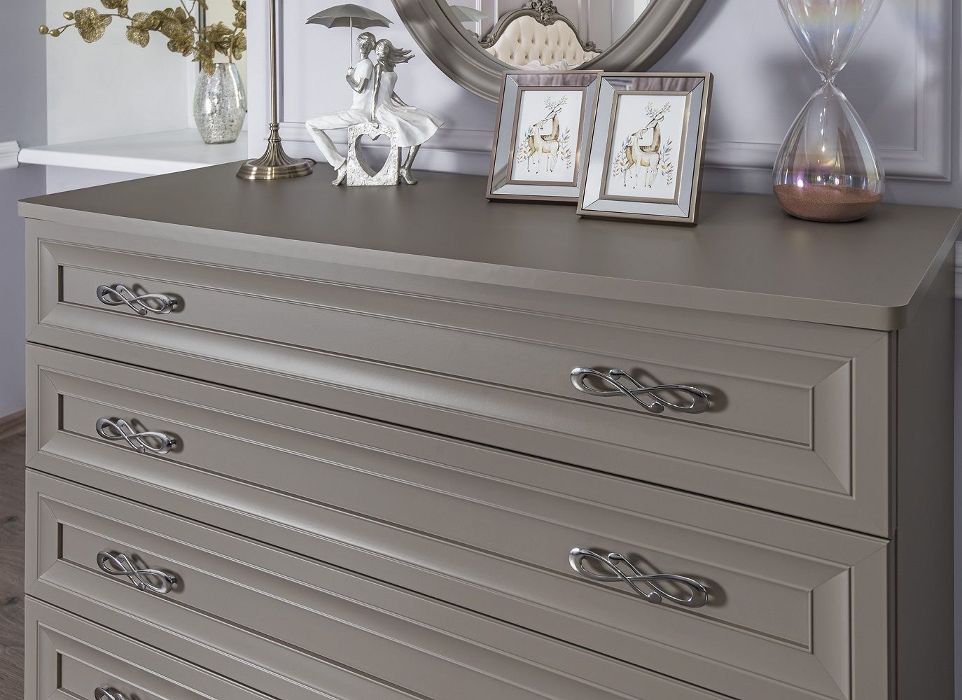 Комод выглядит не только изящно, но и функционально – широкие выдвижные ящики хранят в себе много маленьких секретов. На поверхности комода можно разместить стильные аксессуары и памятные фотографии с семейных праздников, которые будут согревать холодными вечерами.