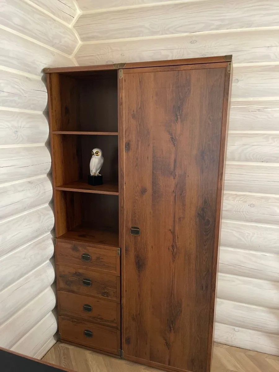 Белорусский стеллаж можно использовать отдельно или в составе комплекта с другой мебелью из коллекции Indiana. Его колоритный внешний вид с древесной текстурой и металлическими уголками, а также фурнитурой в виде подковы-подвеса соответствует стилистике дикого запада. Оцените его удобство на практике и добавьте в свой интерьер нотки ковбойской романтики!