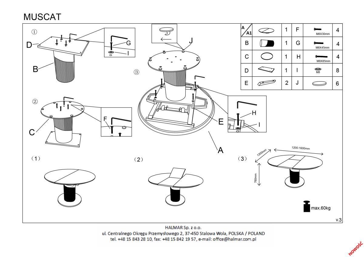 Стол обеденный Halmar MUSCAT 120 раскладной (серый мрамор/светло-серый/золотой)