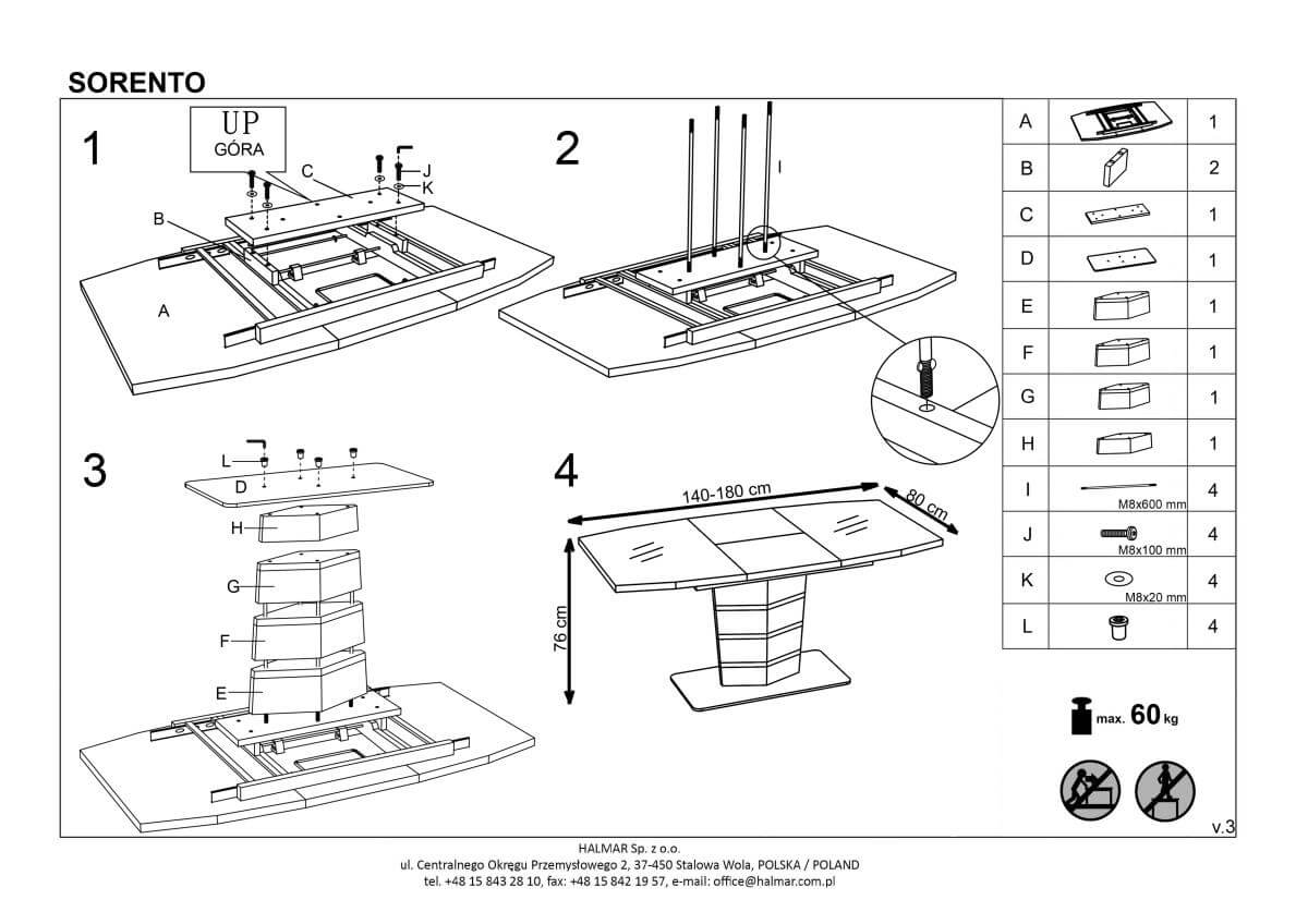 Стол обеденный Halmar SORENTO, раскладной (шампань)